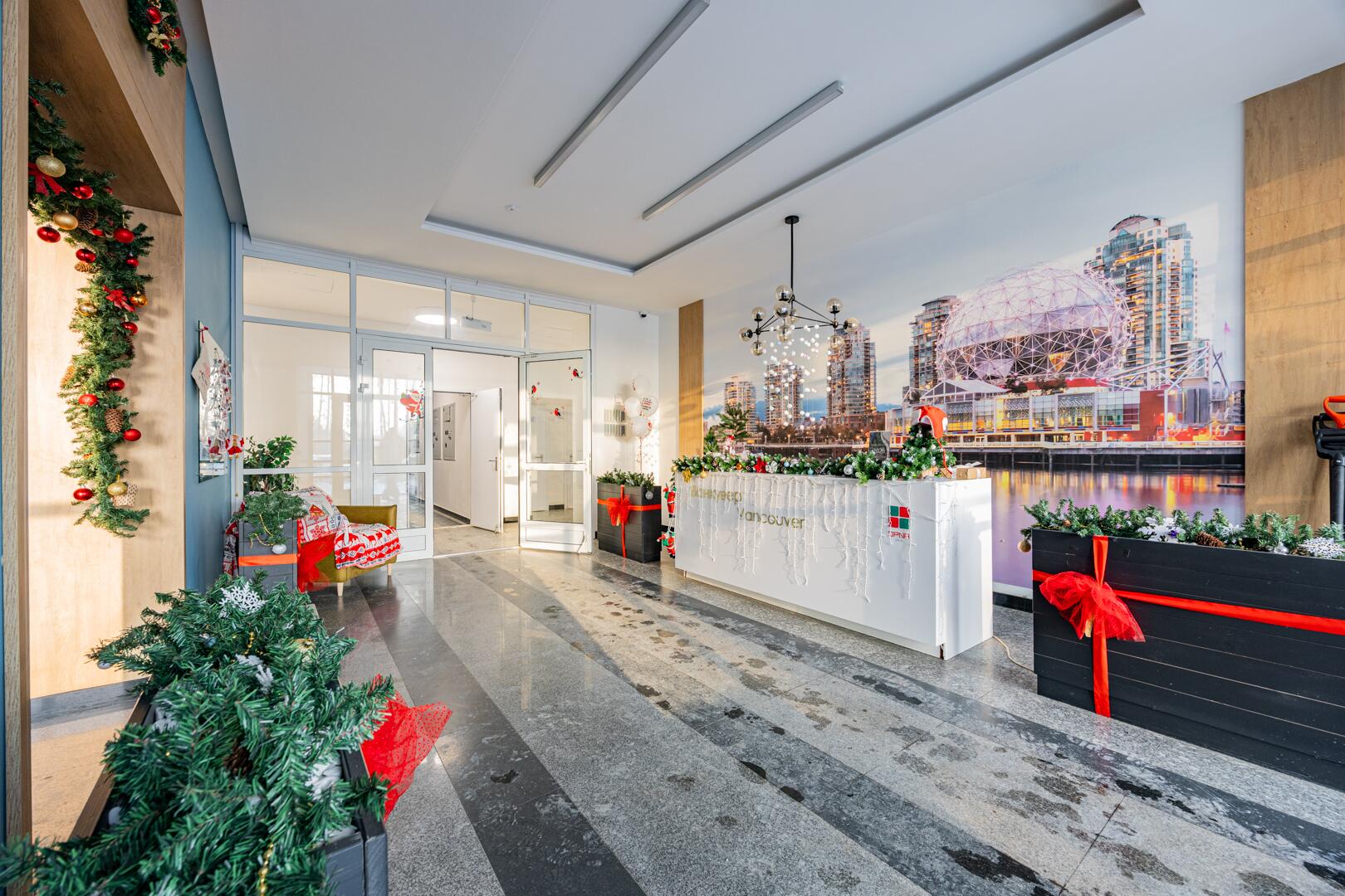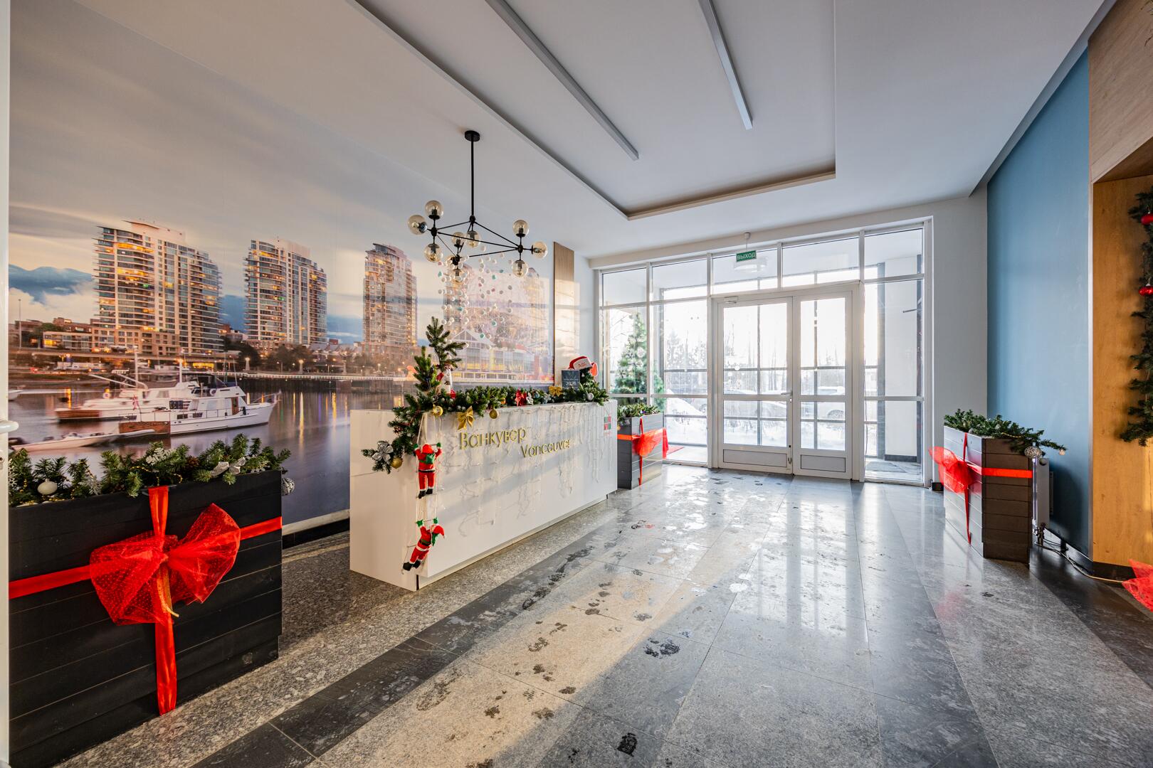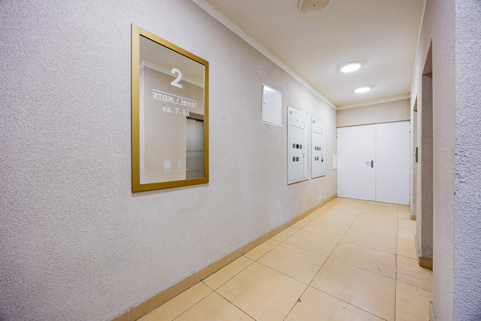 - Дизайнерское лобби с местом для консьержа, зоной отдыха и санитарной комнатой