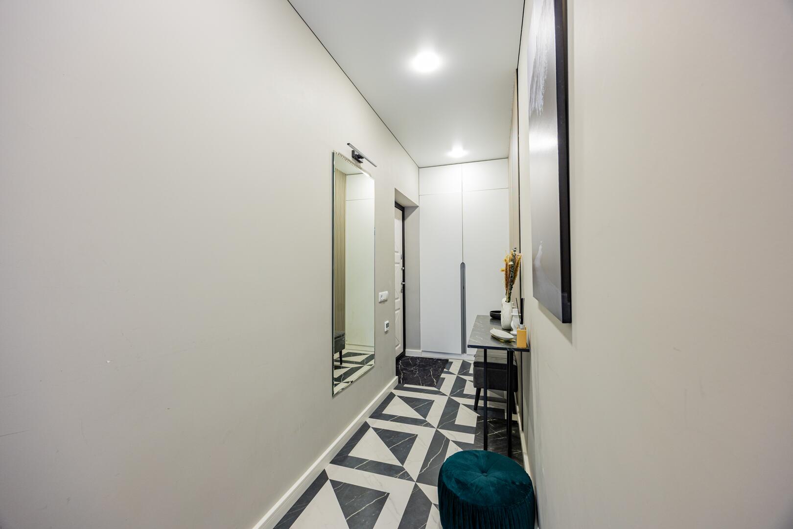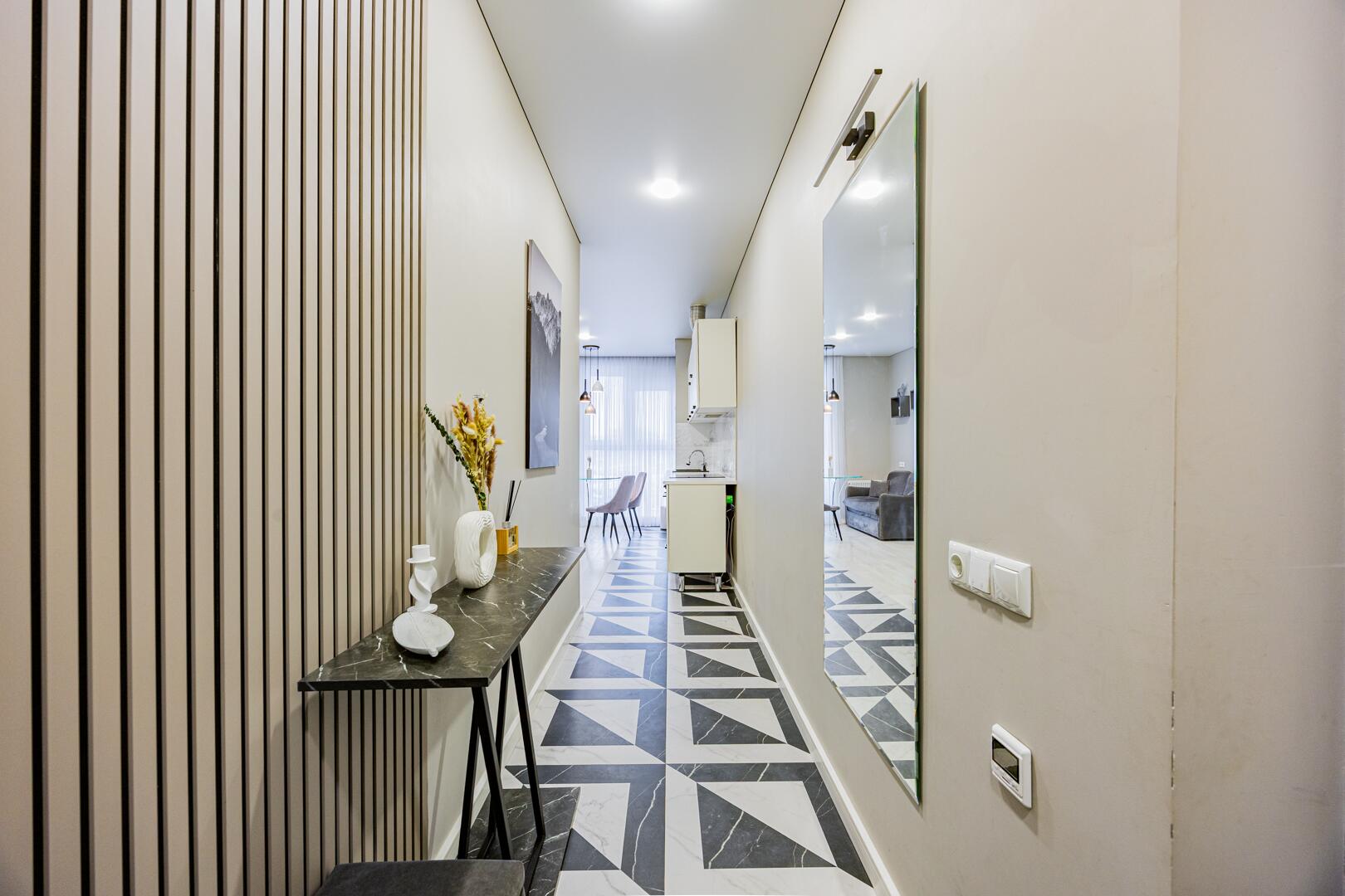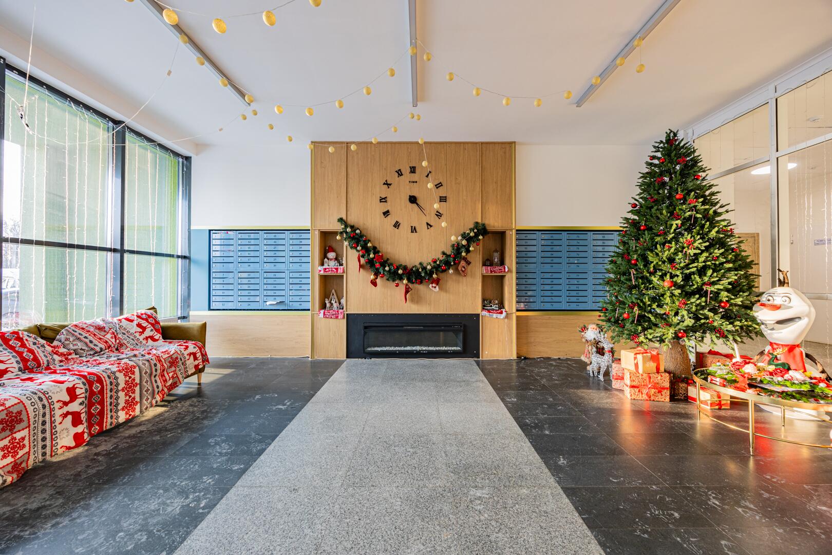 - Дизайнерское лобби с местом для консьержа, зоной отдыха и санитарной комнатой