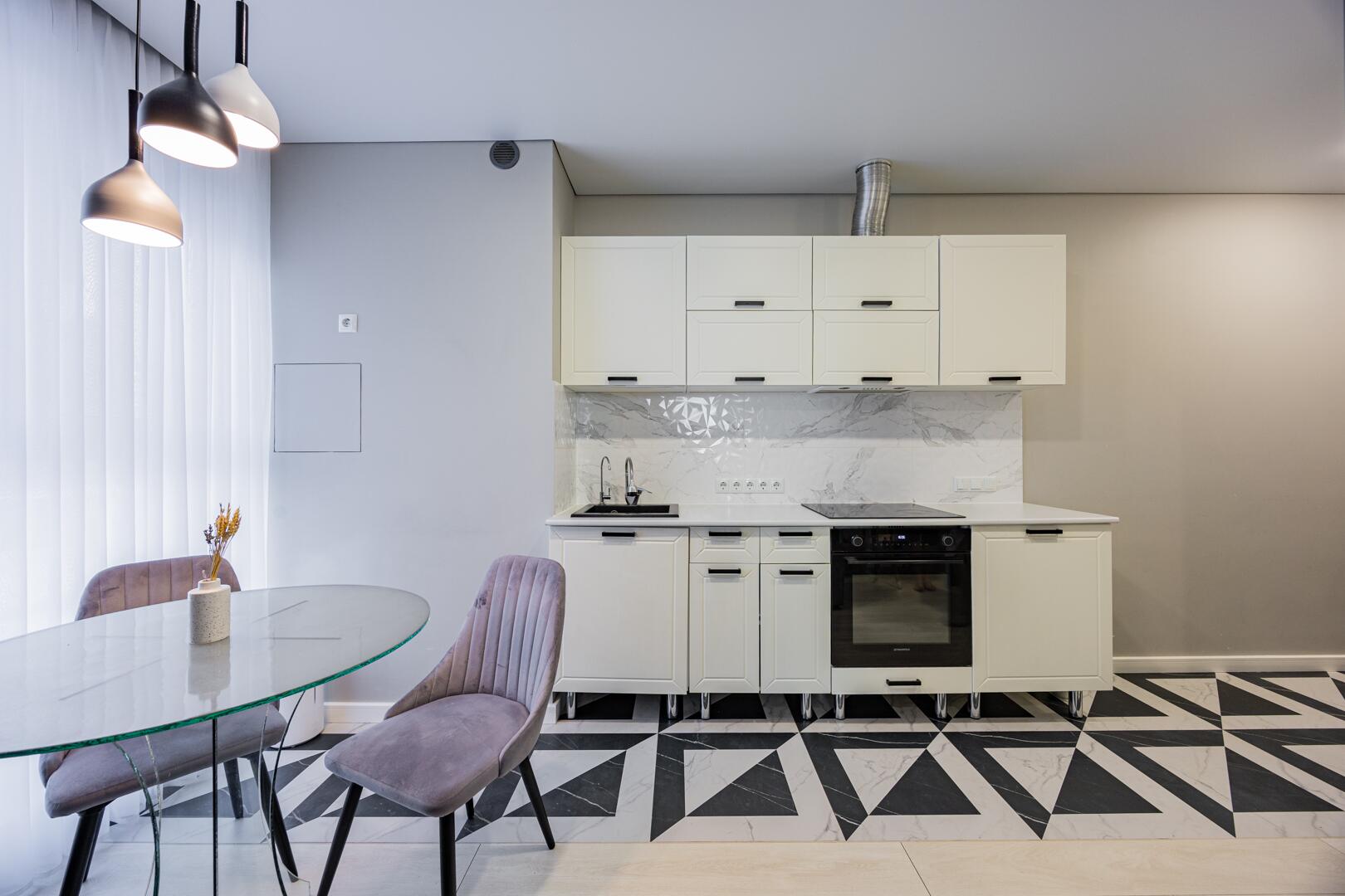 - Кухонный гарнитур c техникой: индукционная варочная поверхность Bosch, духовой шкаф Maunfeld
