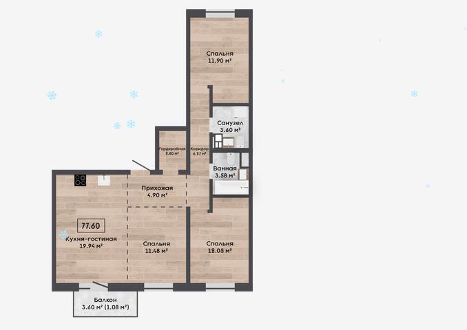 Общая площадь 77.6 м²