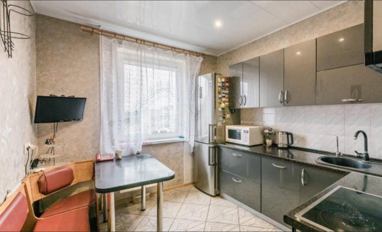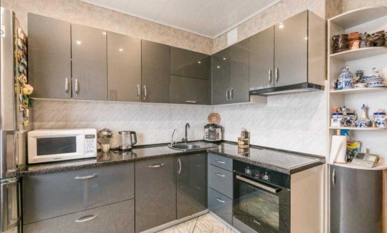 - Кухонный гарнитур и техника: варочная поверхность, духовой шкаф, холодильник, микроволновка.