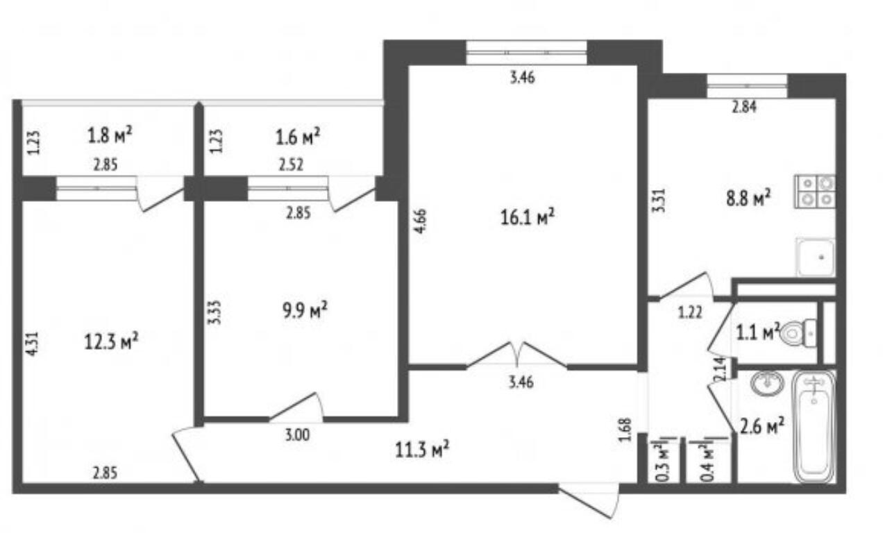 - Все комнаты изолированные, раздельный санузел, 2 застекленные лоджии.
