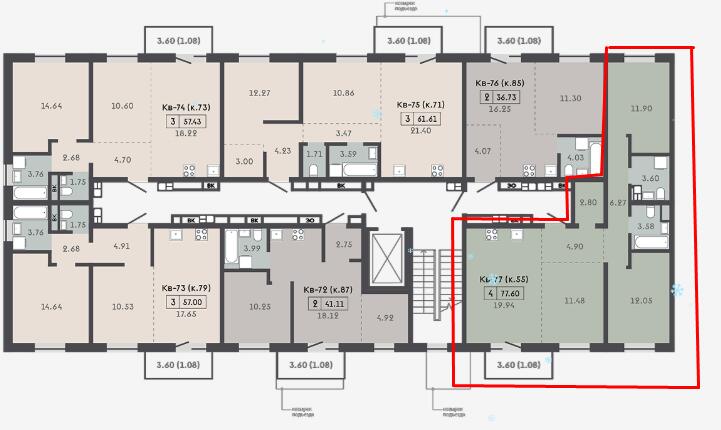 Для каждой квартиры – кладовая в тех. подполье, для некоторых квартир есть кладовые на этаже в угловой секции.