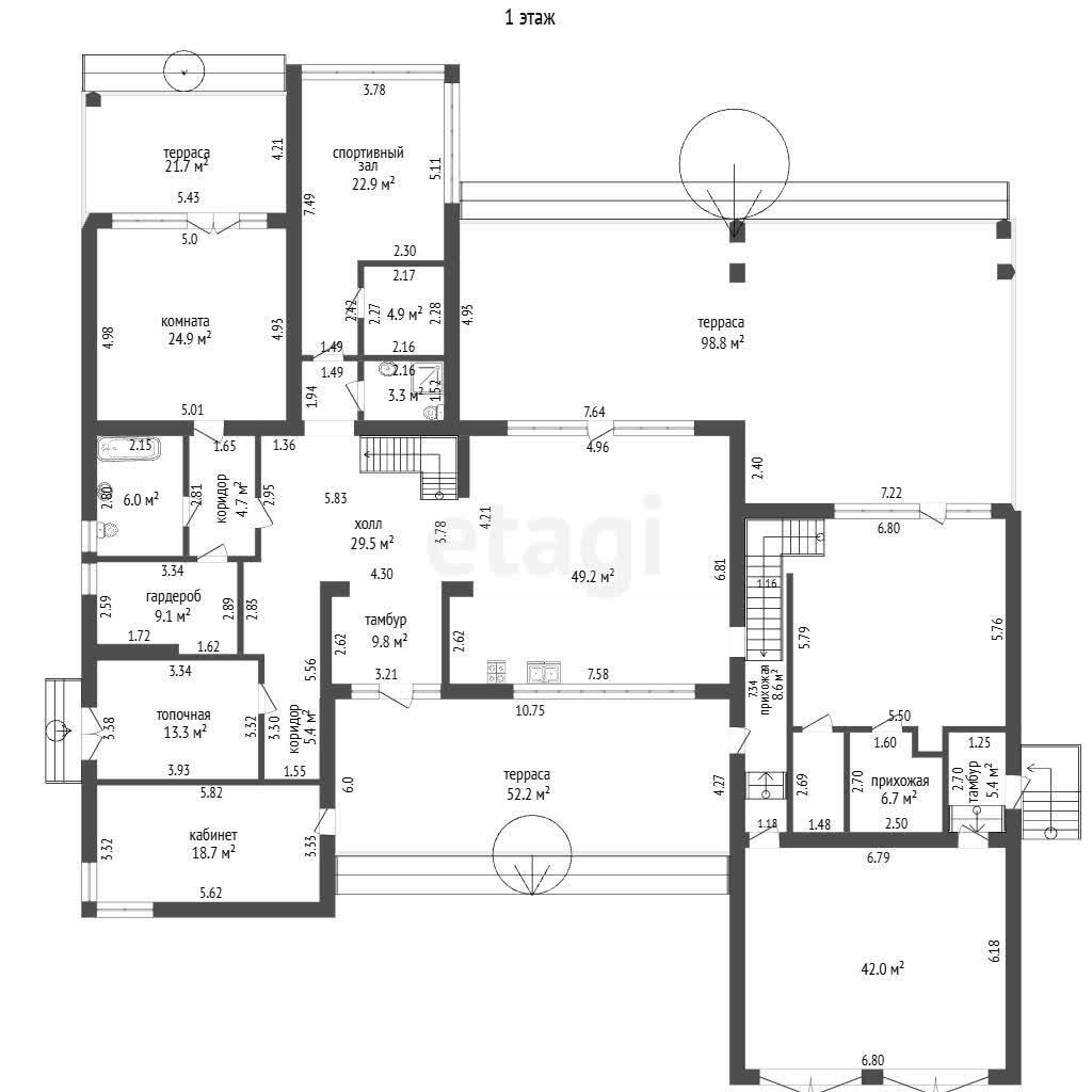 Ещё одной особенностью дома выступают просторные кухни-гостиные со вторым светом.Общая площадь здания 539.6 кв.м.