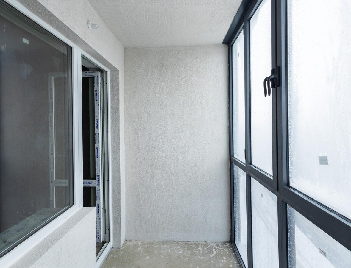 Отличная планировка (есть возможность возведения перегородки для второй изолированной комнаты) - большая кухня-гостиная, просторная спальня с выходом на широкую застеклённую лоджию. Качественная черновая отделка: стены оштукатурены, стяжка пола, разведена электрика с установкой розеток и выключателей, установлены радиаторы отопления (горизонтальная разводка труб отопления со счетчиками тепла), унитаз, счетчики воды и электроэнергии, двухкамерные стеклопакеты ПВХ, подведено оптоволокно. Квартира идеально подготовлена к чистовым работам! Окна выходят на юго-восток!