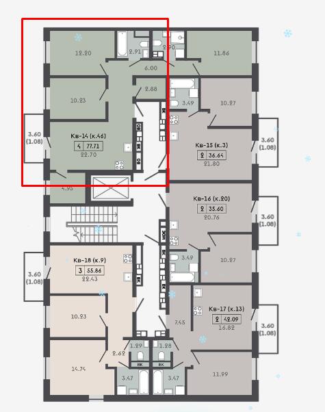 Для каждой квартиры – кладовая в тех. подполье, для некоторых квартир есть кладовые на этаже в угловой секции.