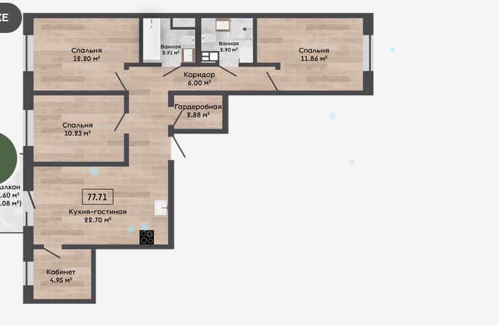 Квартира с отделкой Basic с кухней и кладовой 4,16м2.