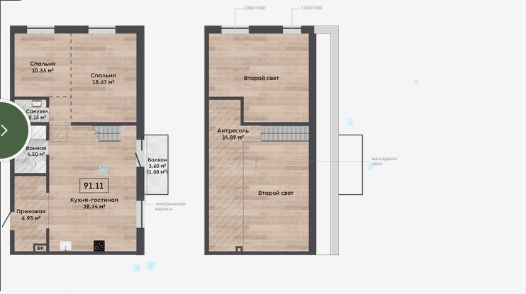 Квартиры с мастер-спальнями, гардеробными, кабинетами.