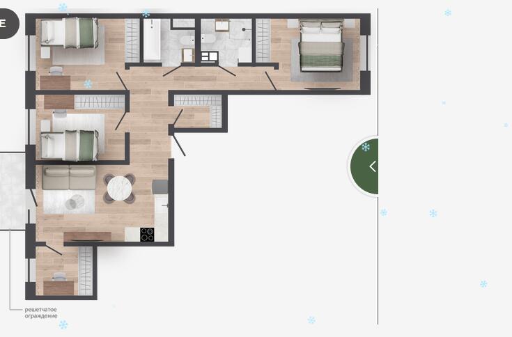 Квартиры на 1 этаже с личными участками-террасами с видом во двор и зеленый коридор.