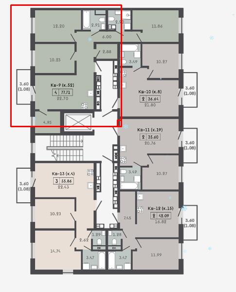 Для каждой квартиры – кладовая в тех. подполье, для некоторых квартир есть кладовые на этаже в угловой секции.