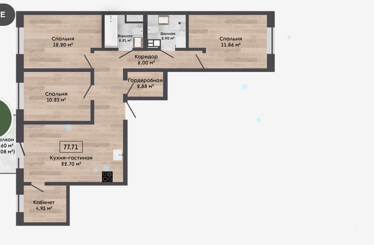 Квартира с отделкой Basic и кладовой 4,64м2.