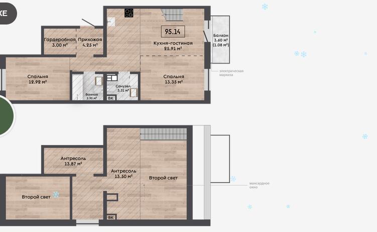 Квартиры с мастер-спальнями, гардеробными, кабинетами.