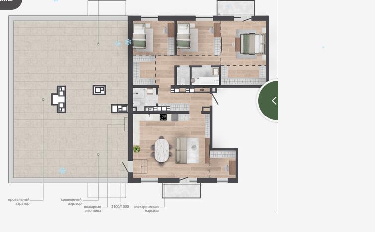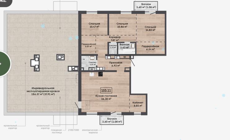 Квартира с террасой на крыше и кладовой 5,14м2.