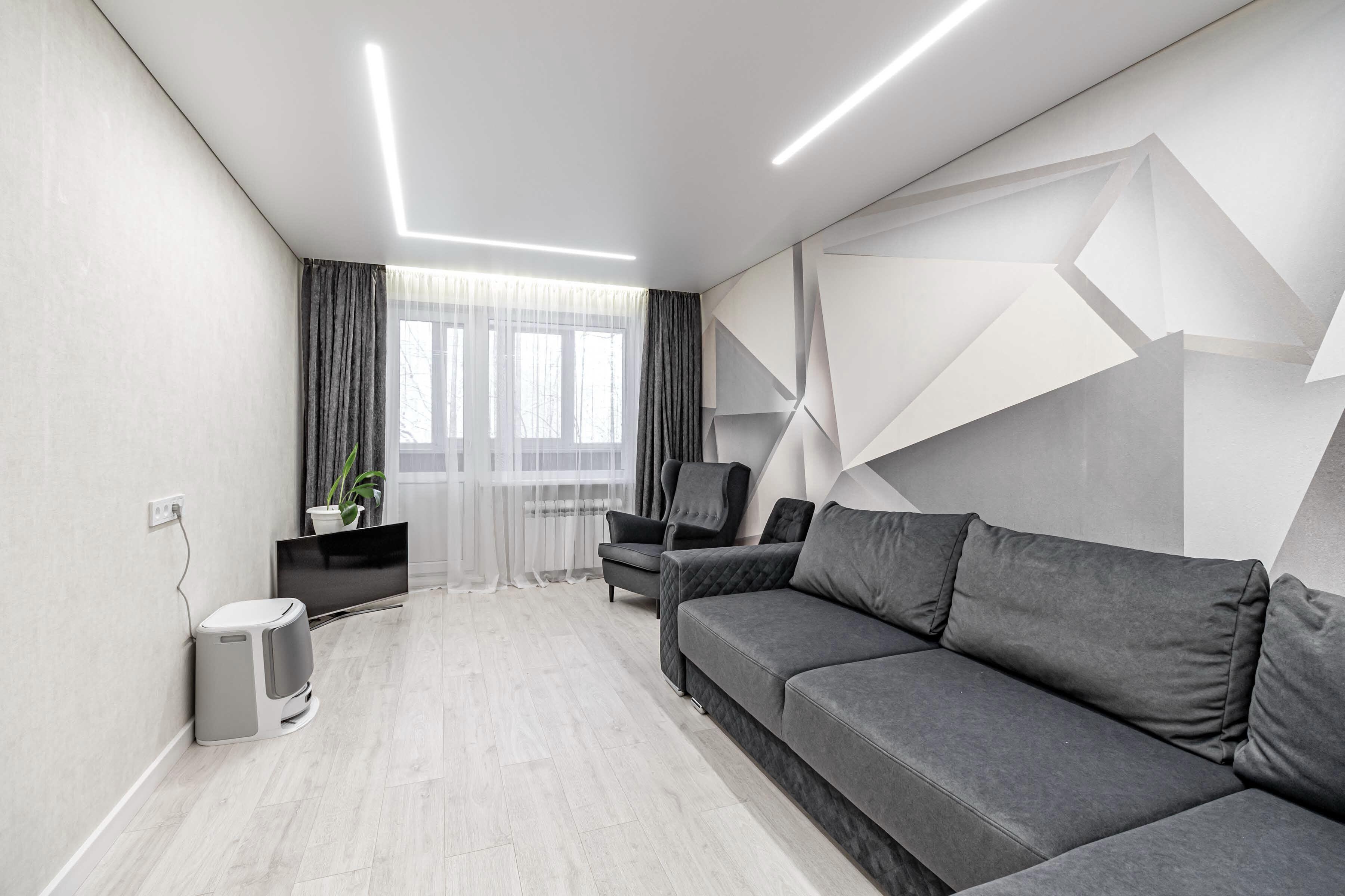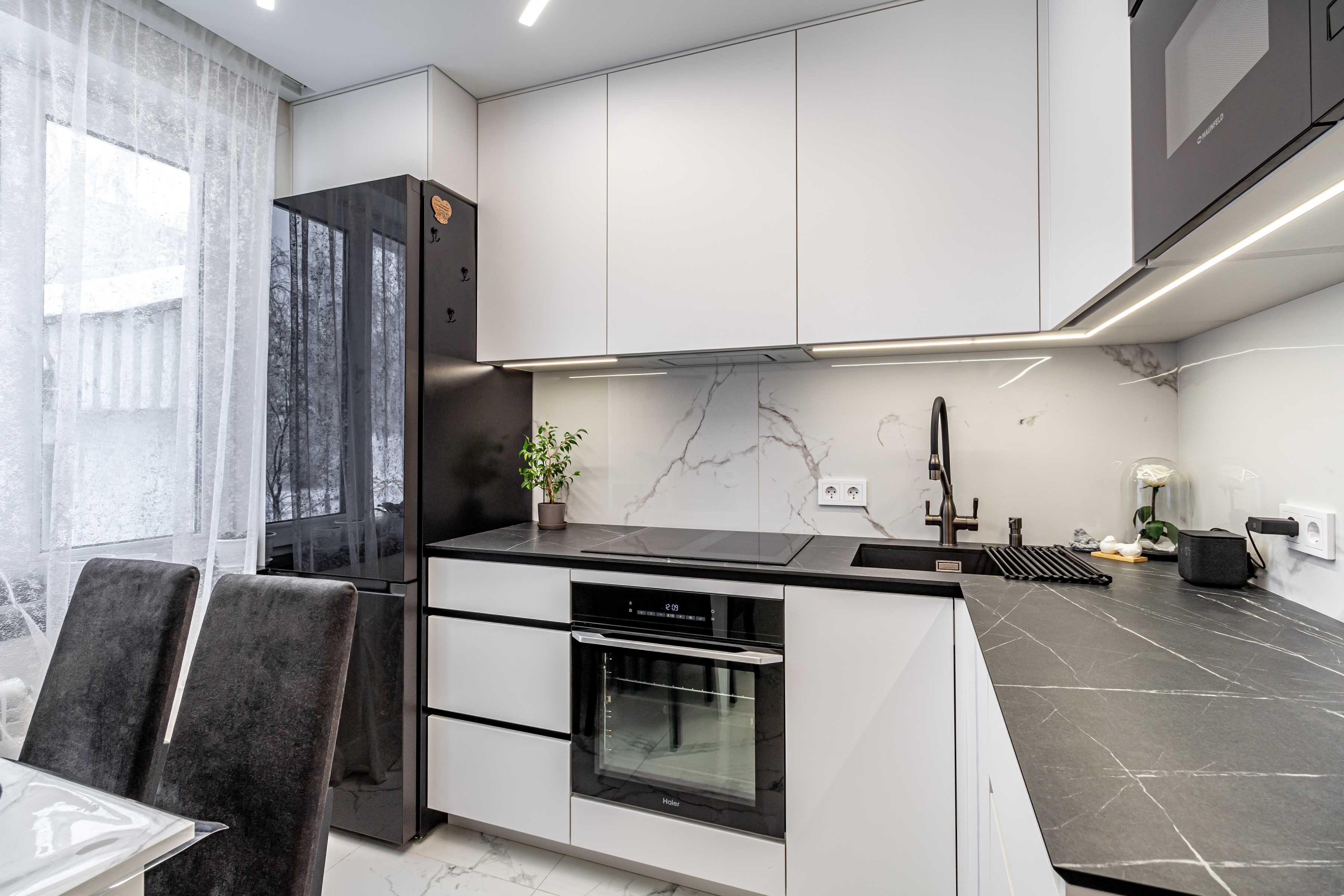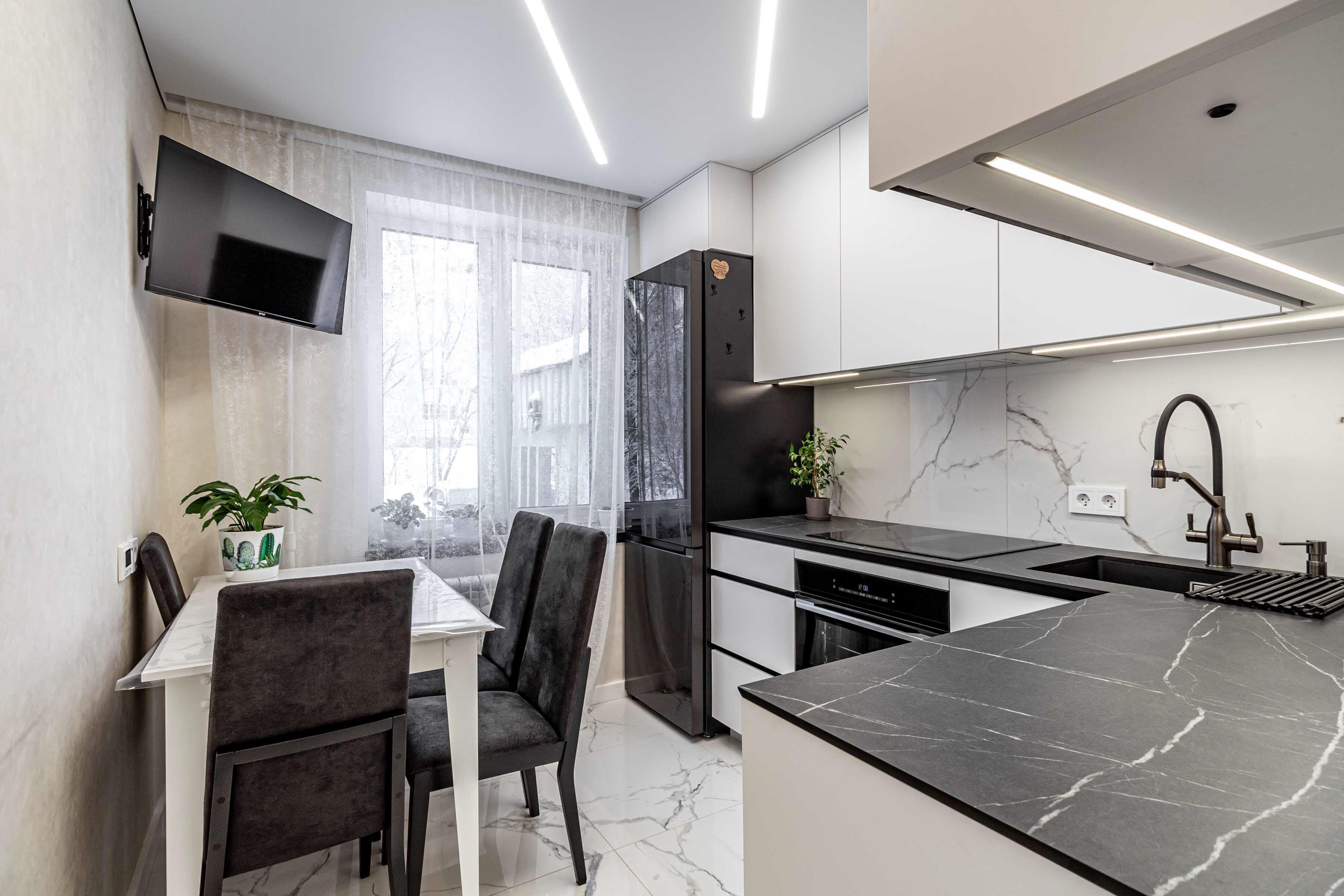 · Вся мебель и техника гармонично вписаны в интерьер: