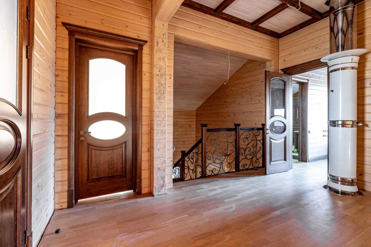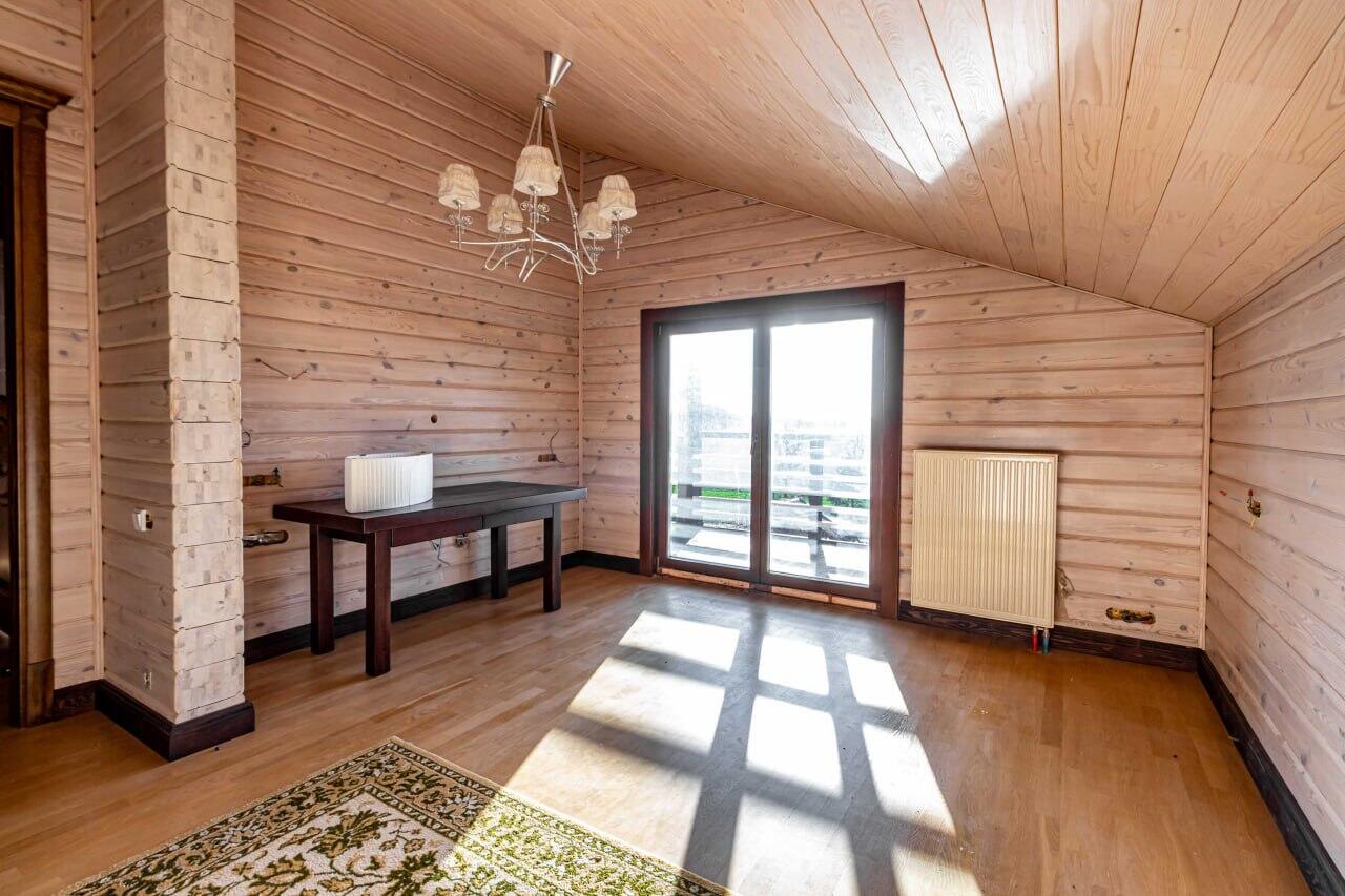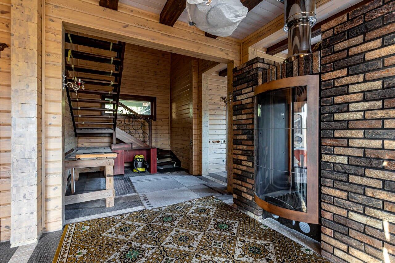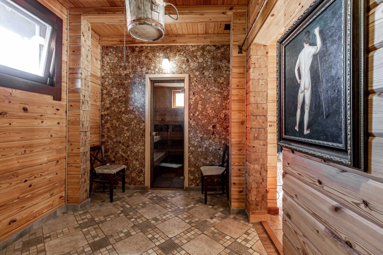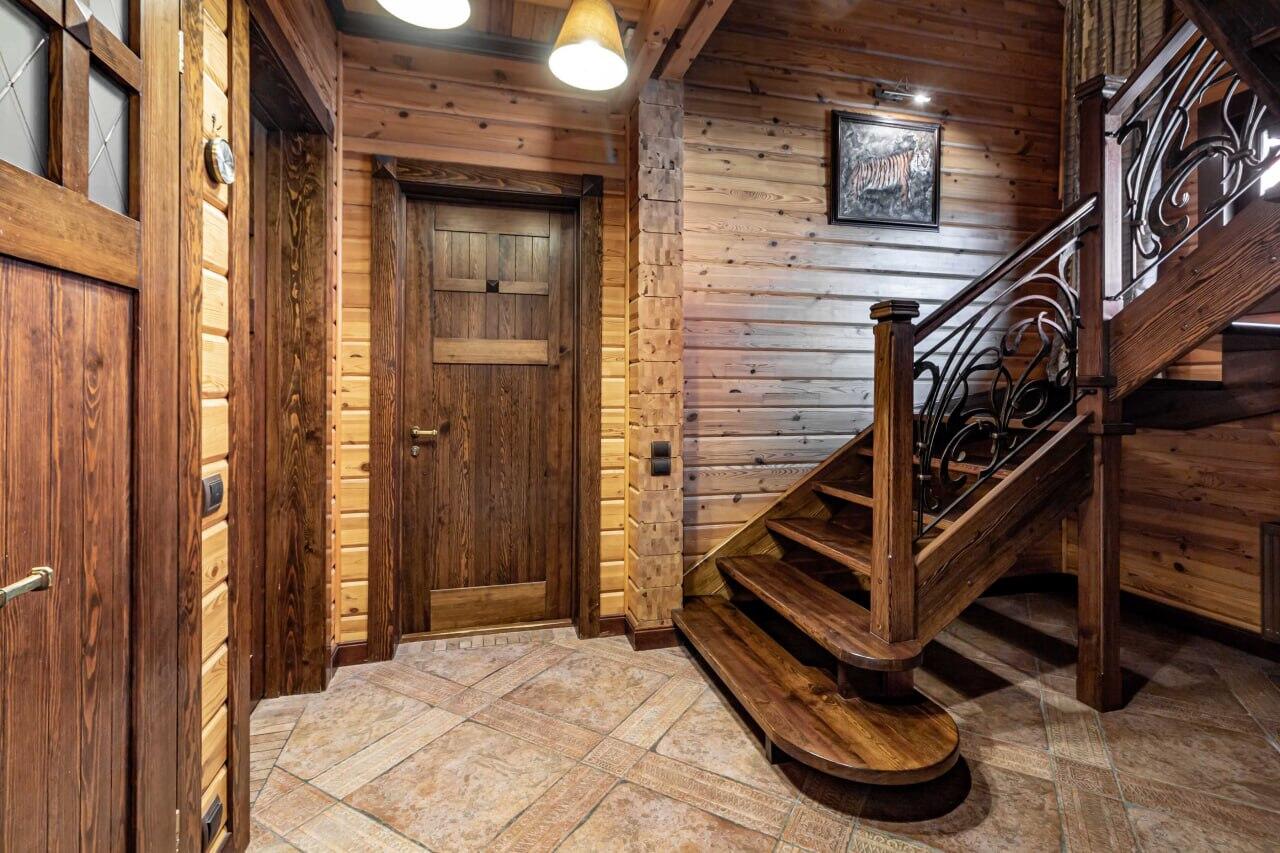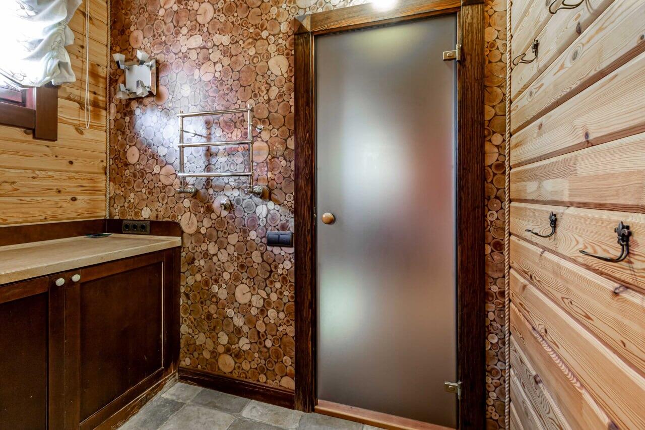 - Стены: вручную отшлифованы и покрыты маслом OSMO (Германия) для сохранения природной текстуры дерева.