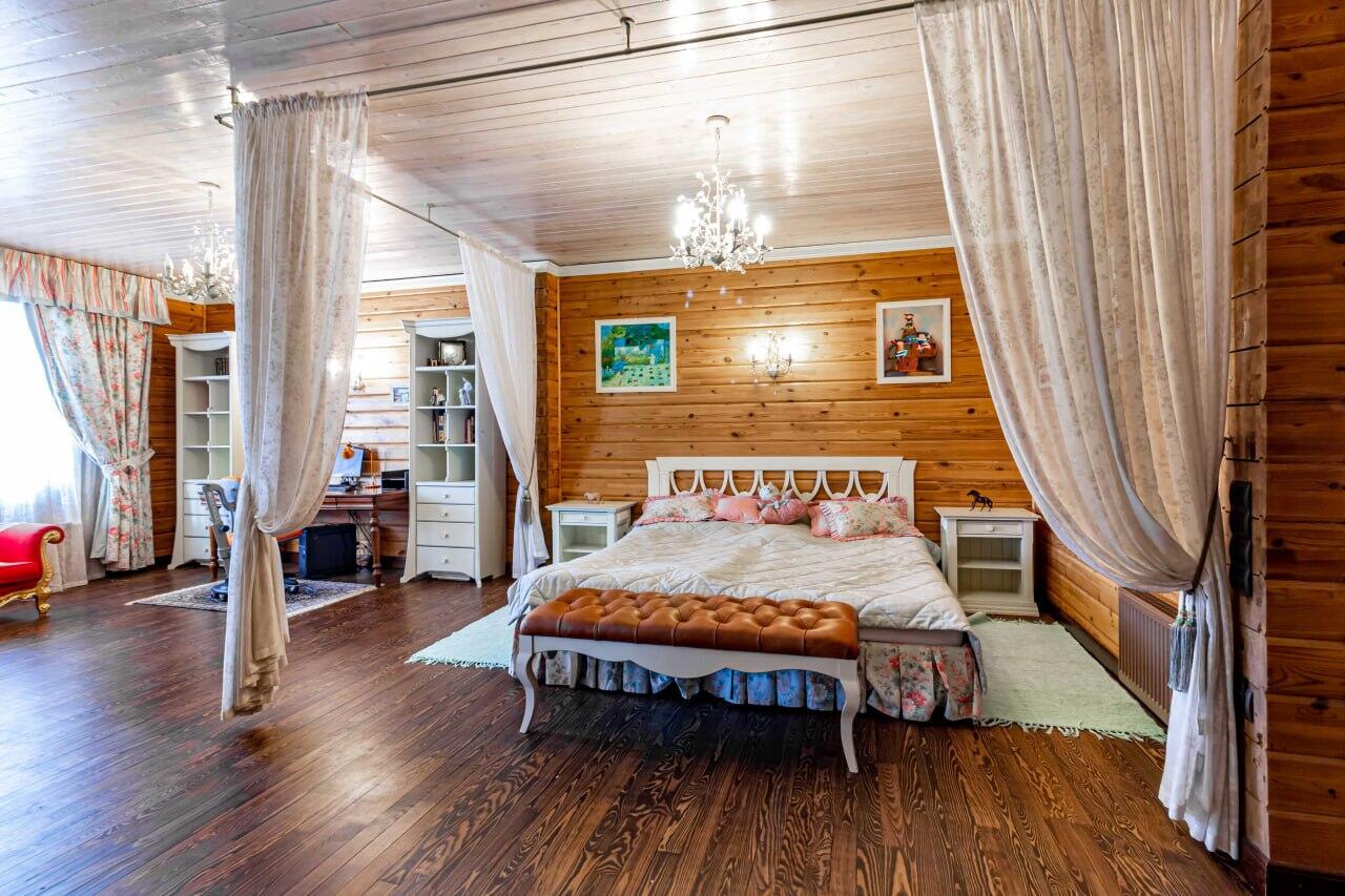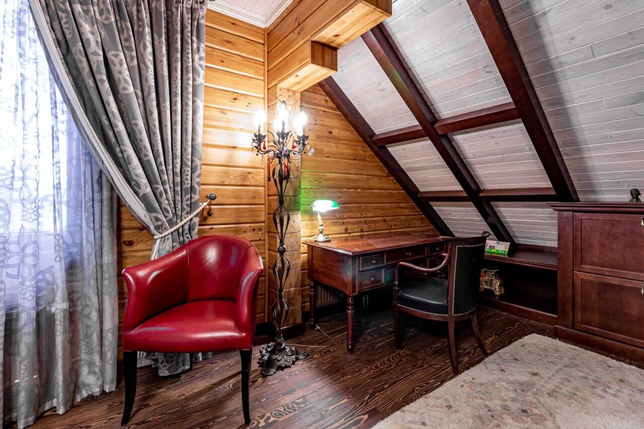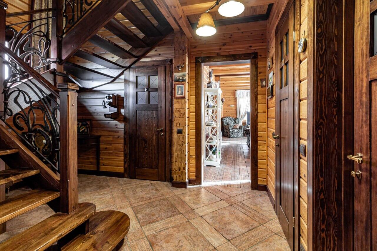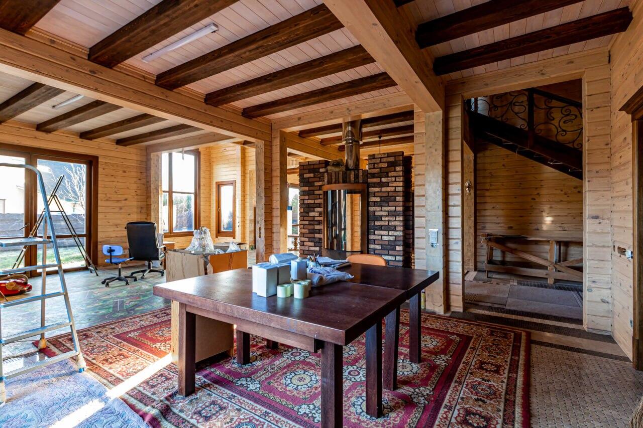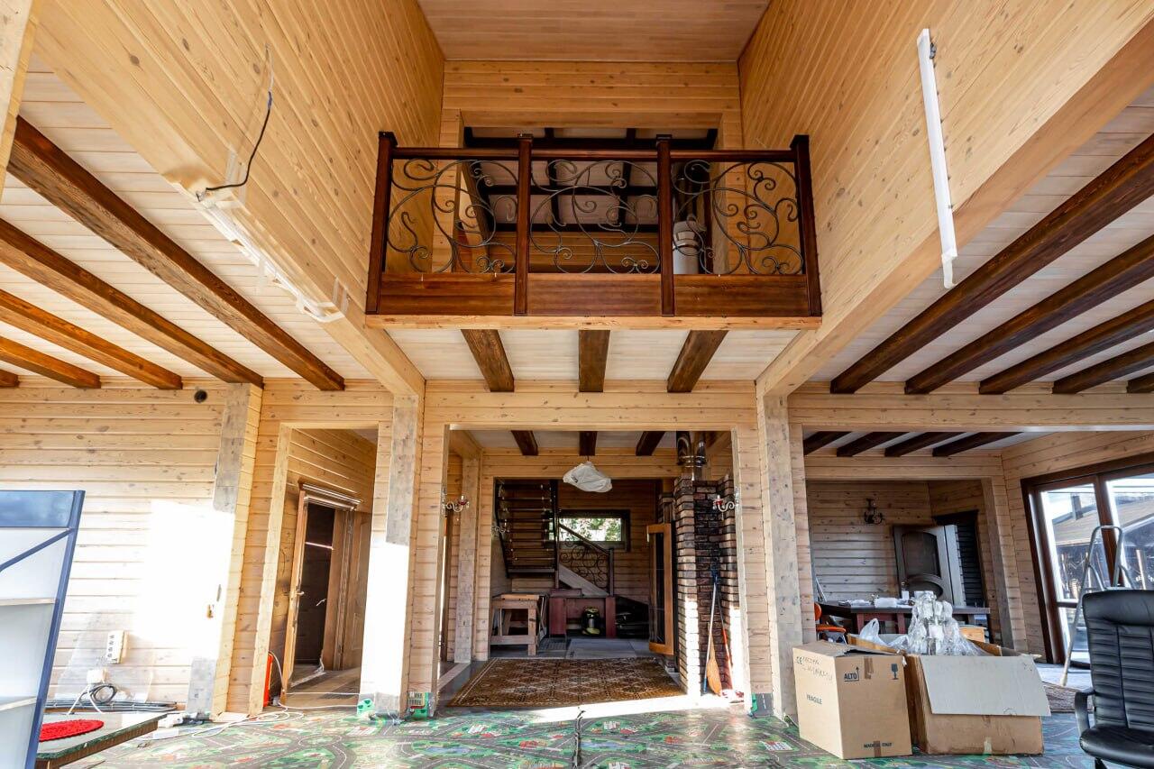 - Стены: вручную отшлифованы и покрыты маслом OSMO (Германия) для сохранения природной текстуры дерева.