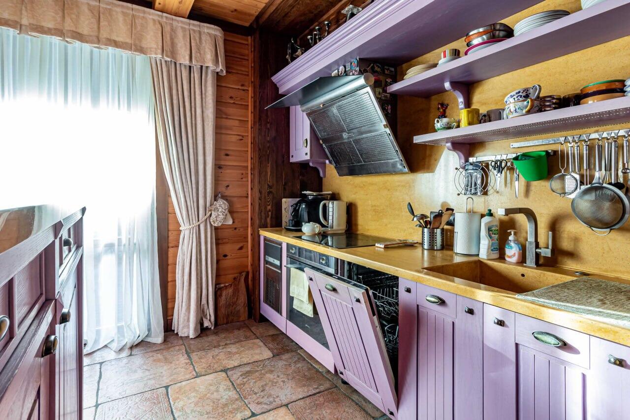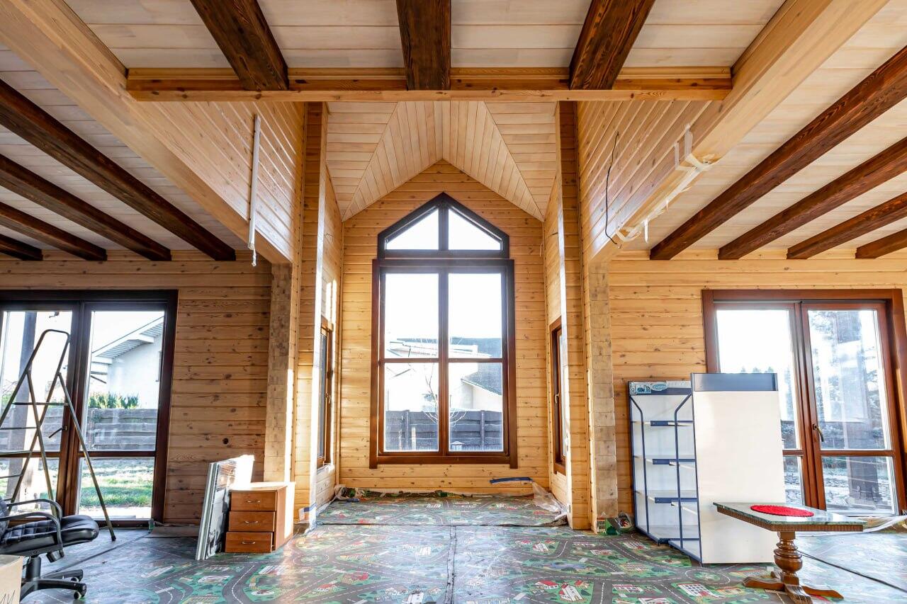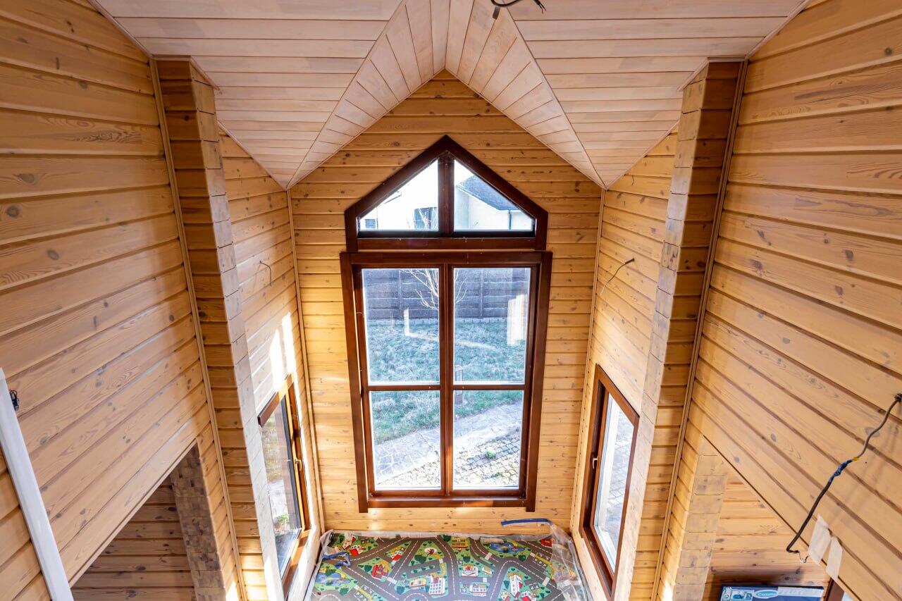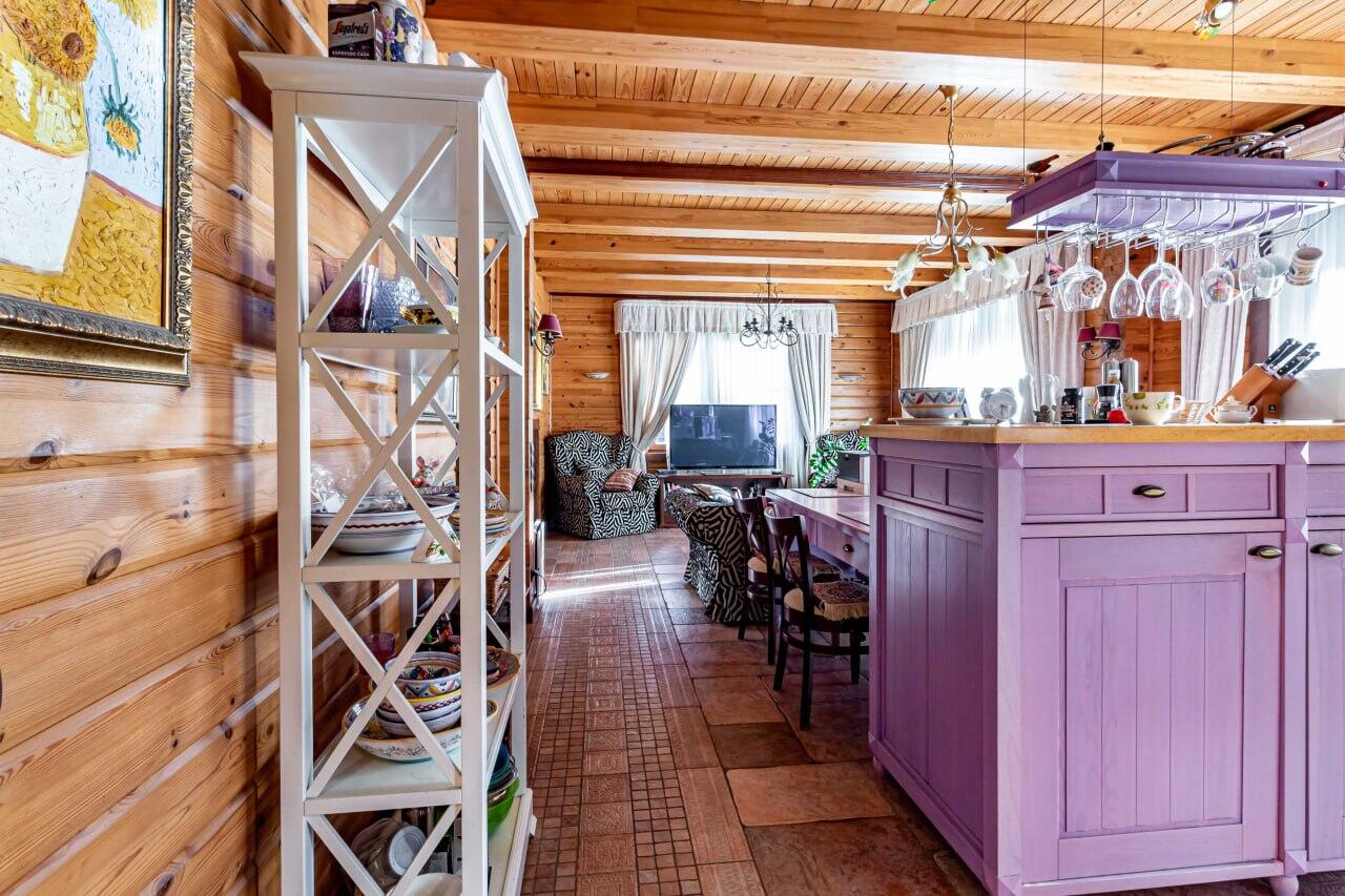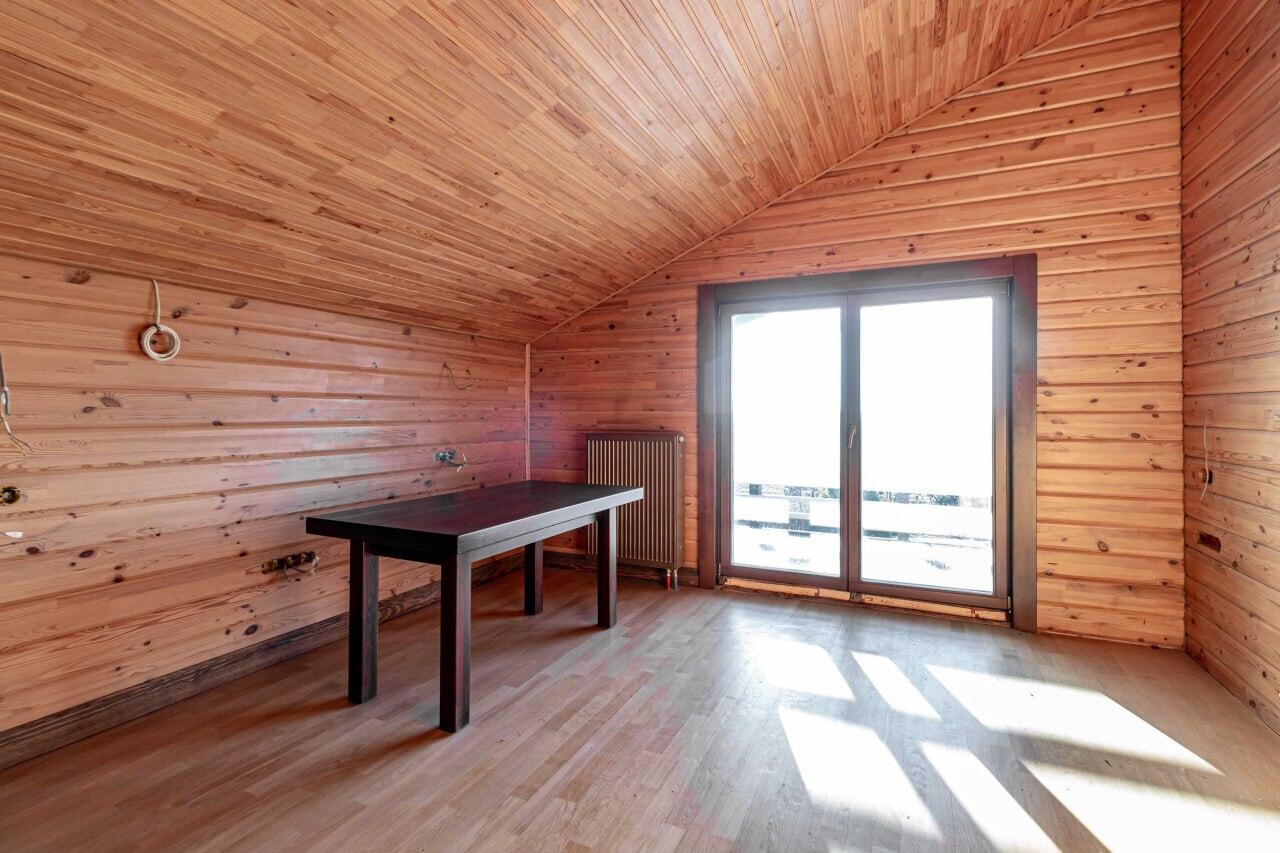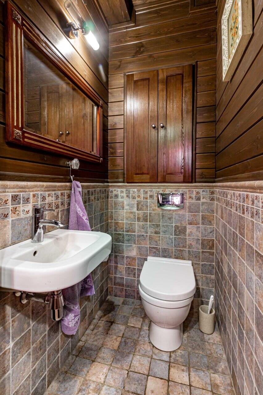 - Стены: вручную отшлифованы и покрыты маслом OSMO (Германия) для сохранения природной текстуры дерева.