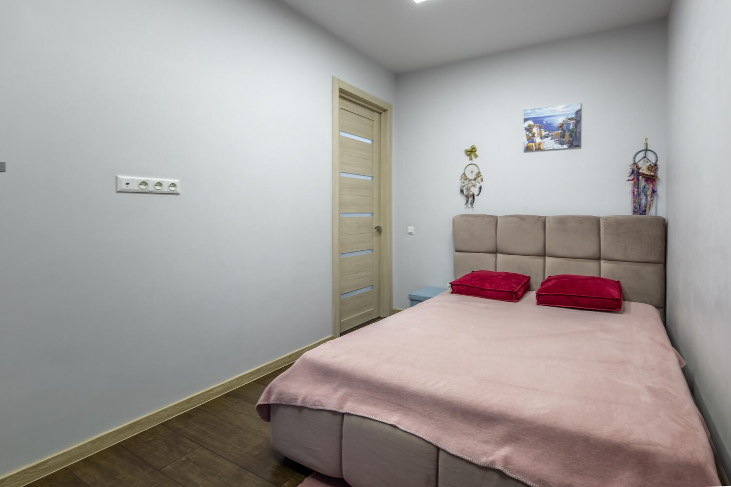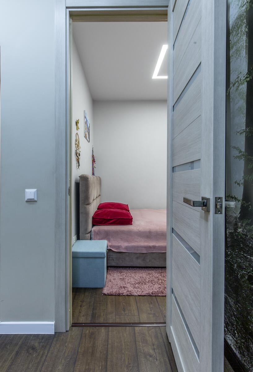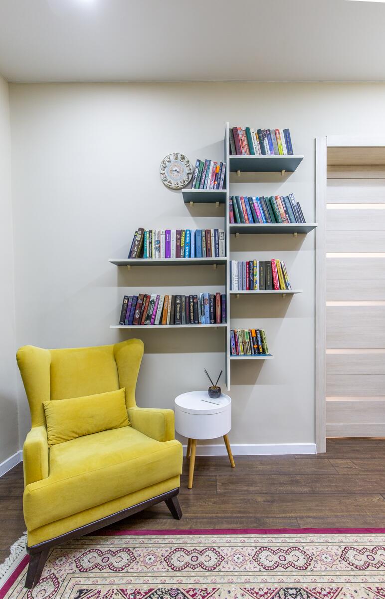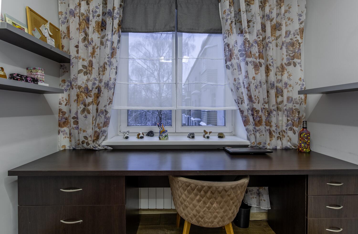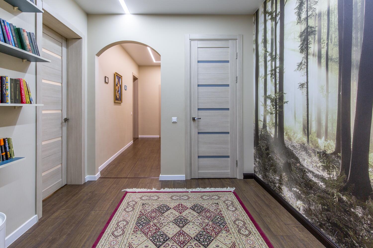 Ремонт выполнен в нейтральных теплых тонах.