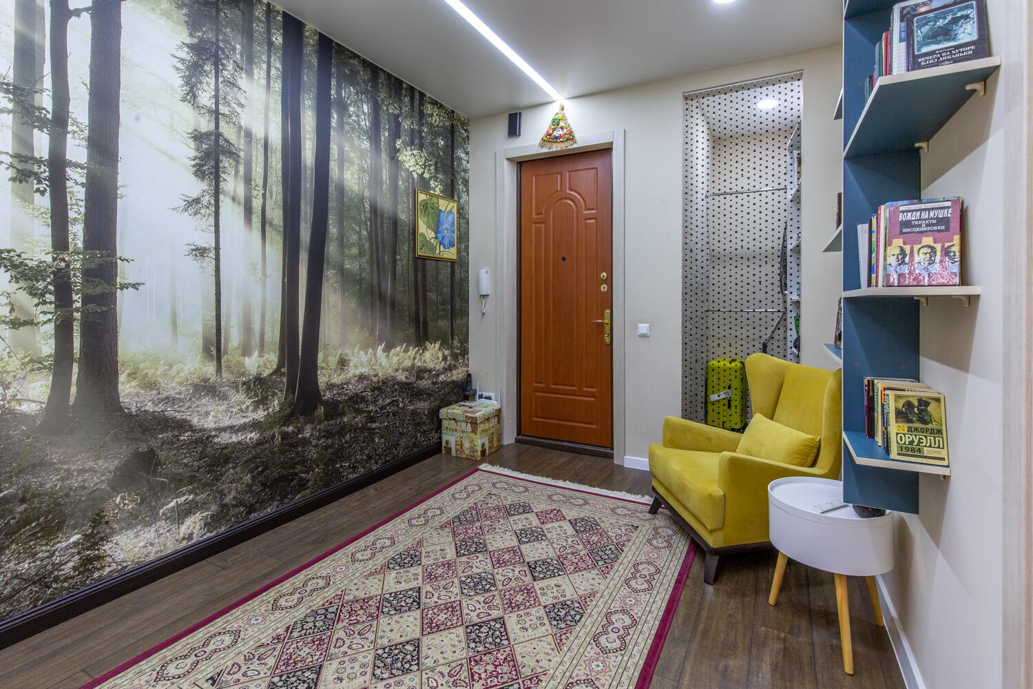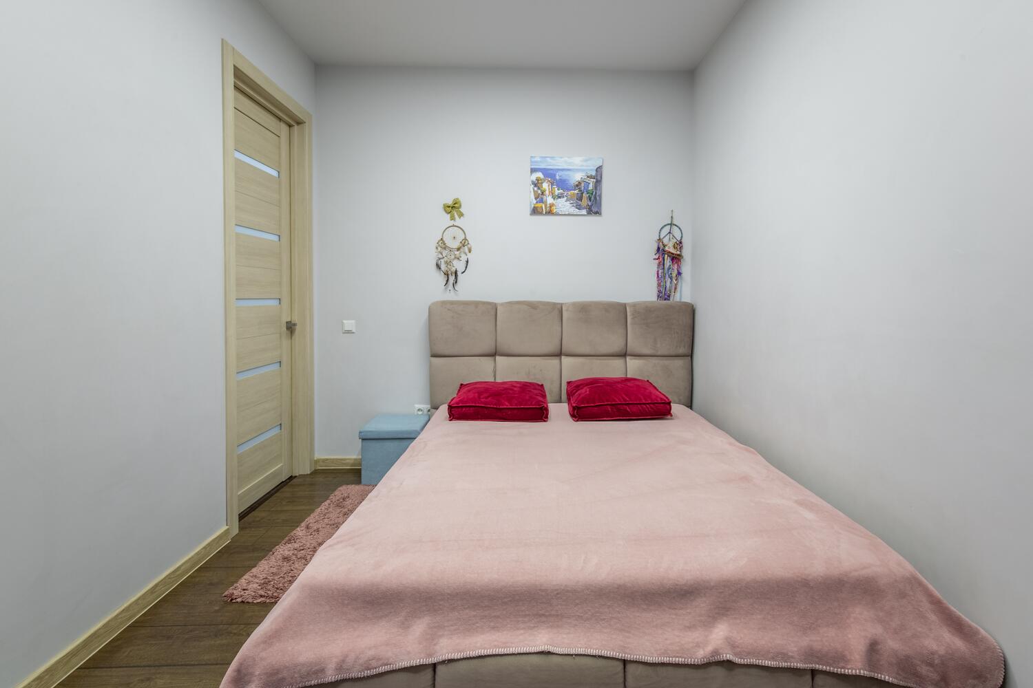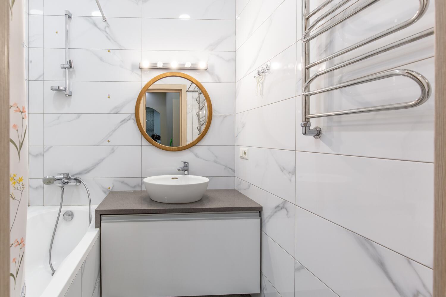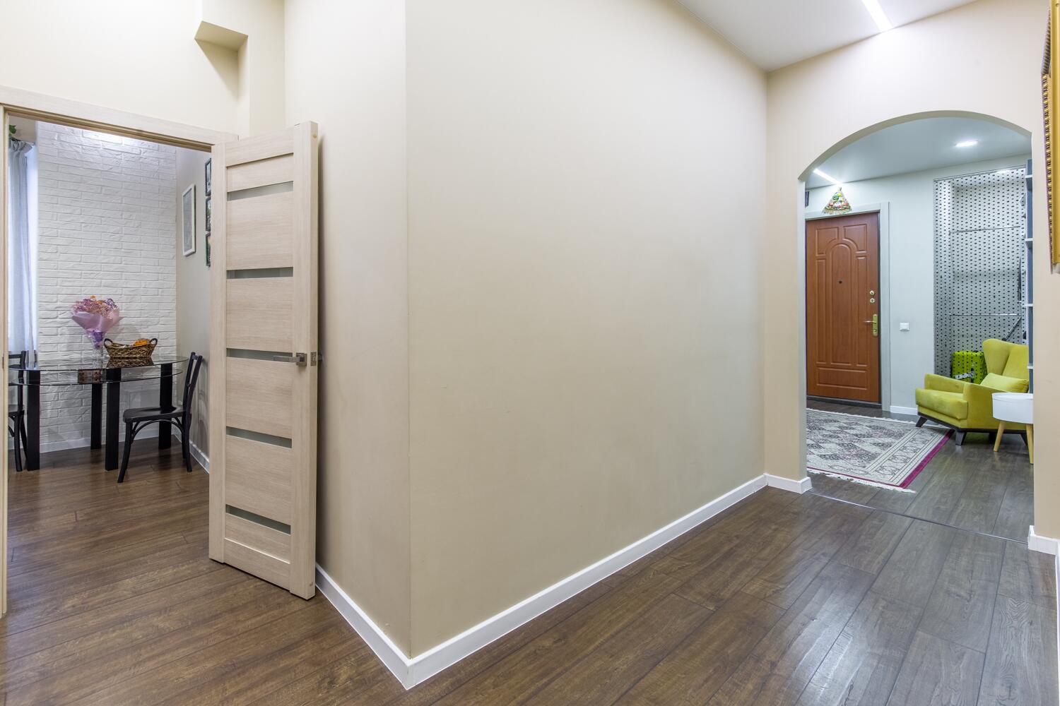 Ремонт выполнен в нейтральных теплых тонах.