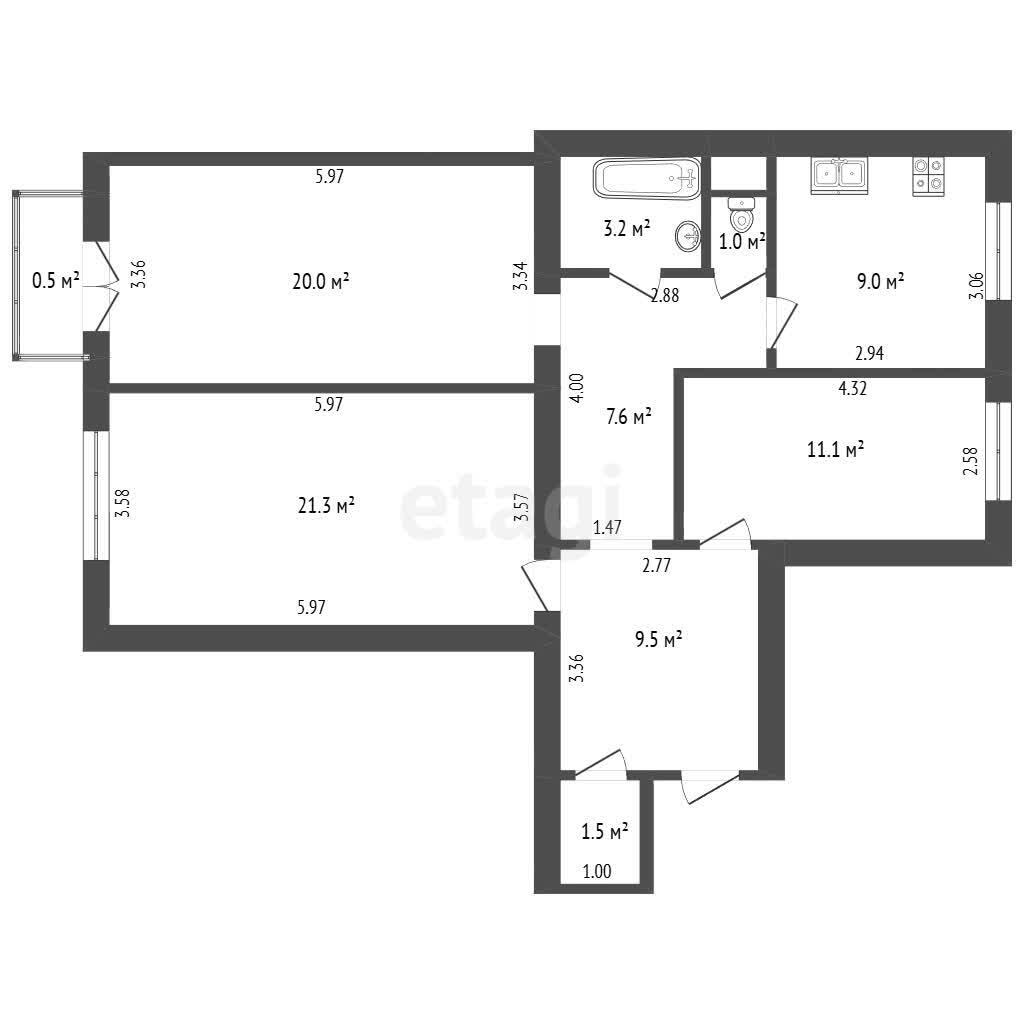 – 3 раздельные комнаты