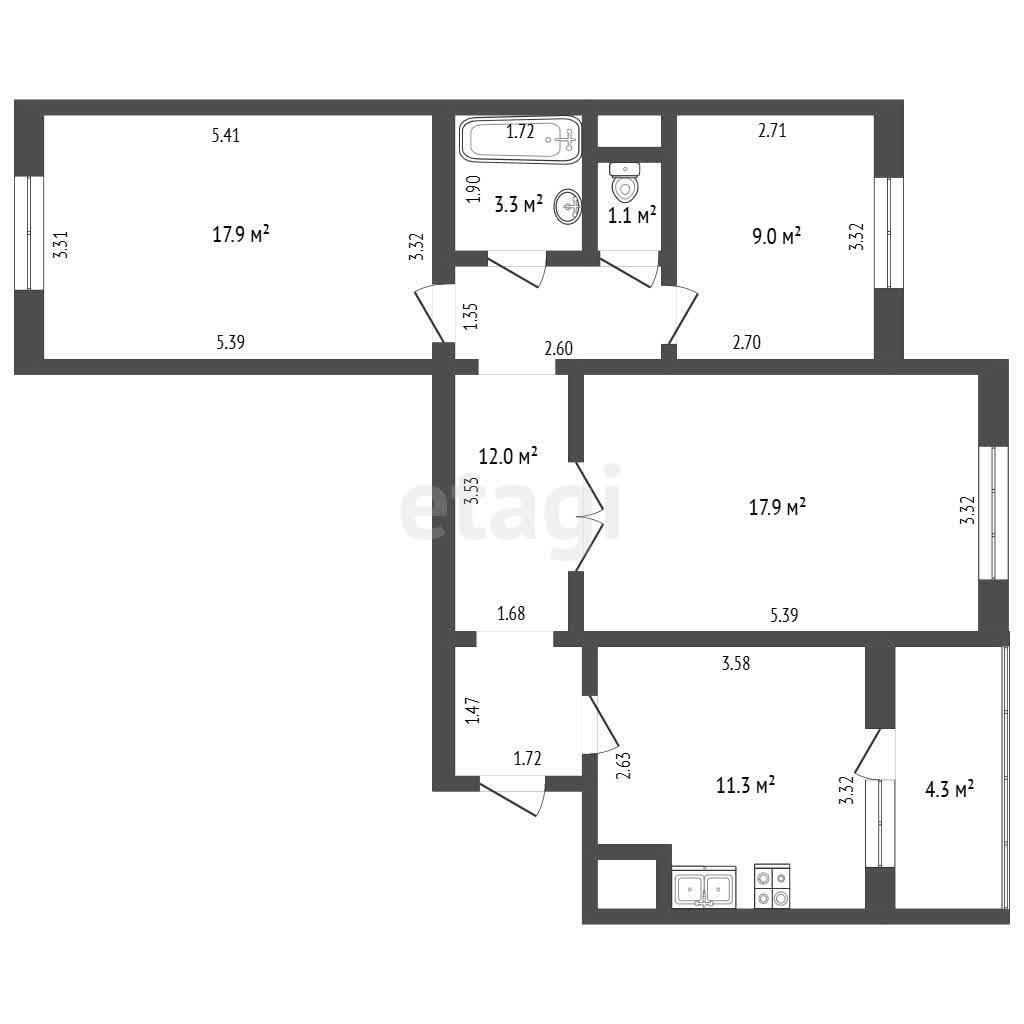 Три отдельные комнаты позволяют гибко адаптировать пространство под ваш сценарий жизни:гостиная, спальня и детская или кабинет — без компромиссов.Вдоль всего коридора установлен вместительный шкаф-купе — продуманное решение для хранения.Санузел раздельный — практично и удобно для семьи.