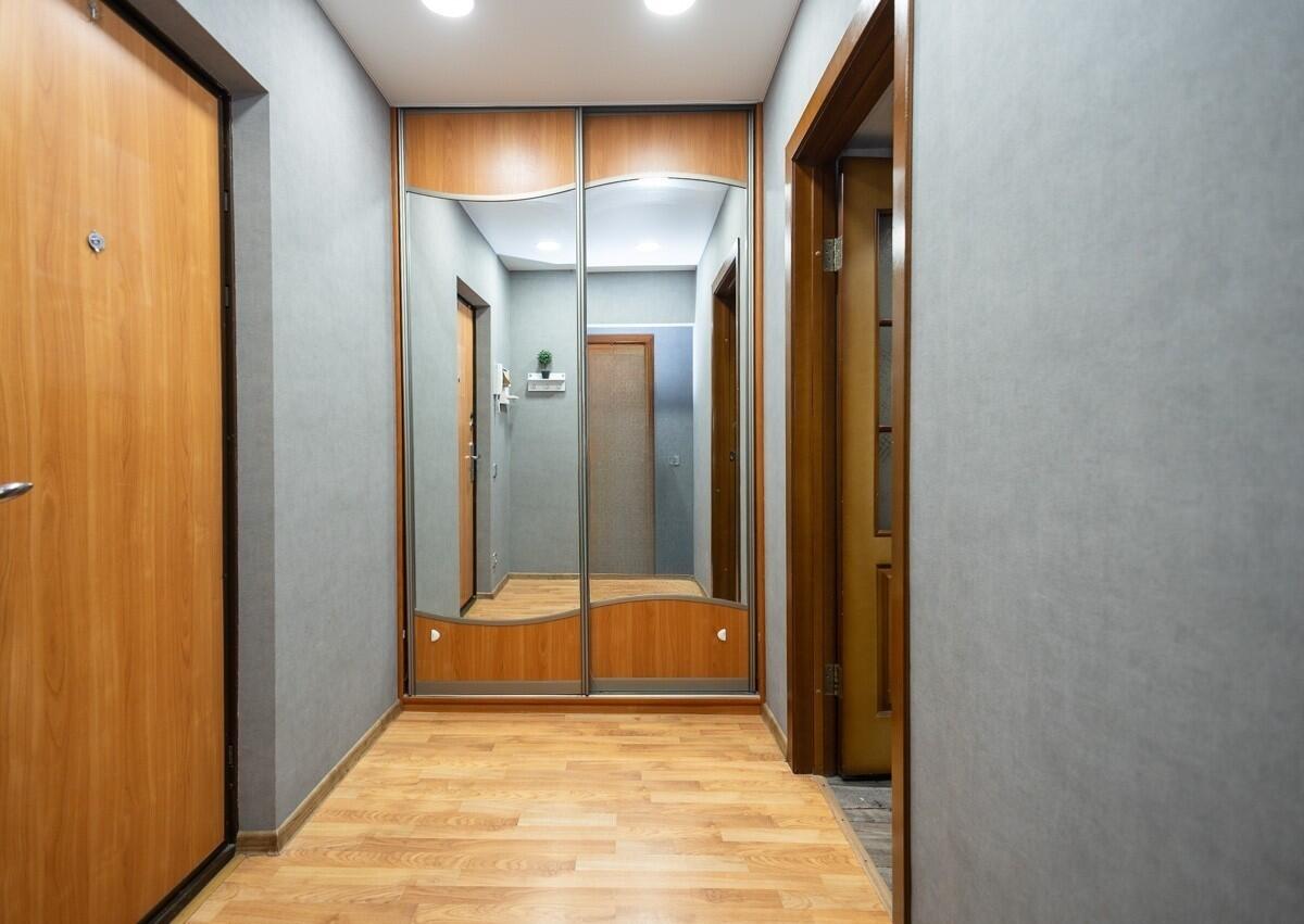 В коридоре имеется большой шкаф-купе с зеркалом.