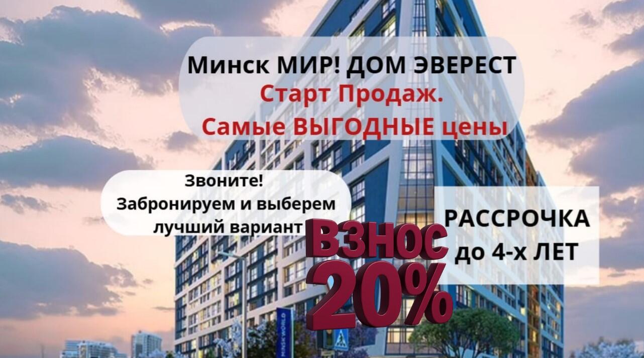 Апартаменты напрямую от застройщика! Дом Эверест! Старт продаж! Выбор планировок и этажей! Расчет рассрочки. Выгодная рассрочка! Цены и наличие актуальны на 14.02.2026. Стать владельцем недвижимости в Minsk World можно: За собственные средства. В рассрочку без справок и поручителей (только паспорт!). Все дома в комплексе каркасно-блочные, от 10 до 25 этажей. Скоростные бесшумные лифты...