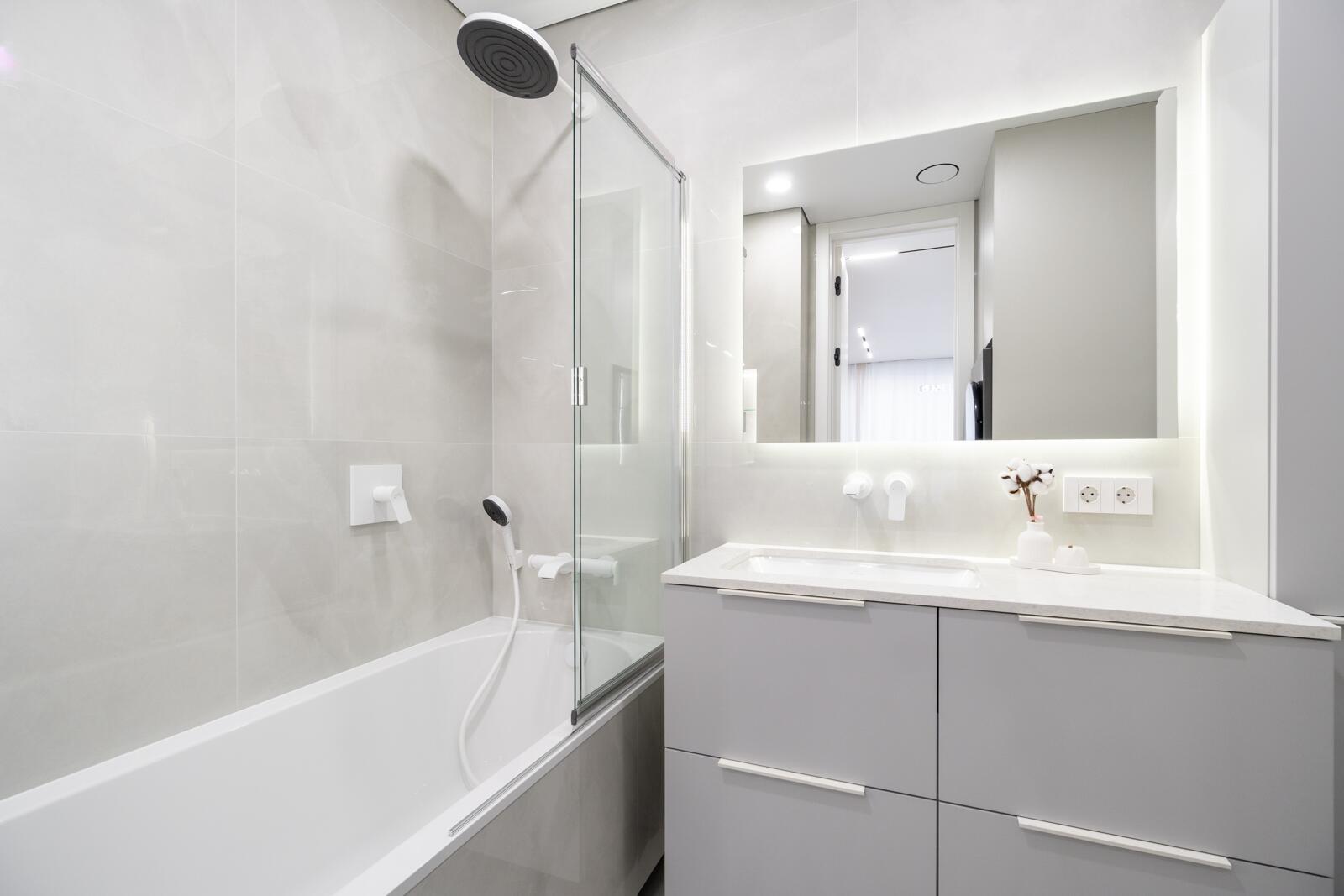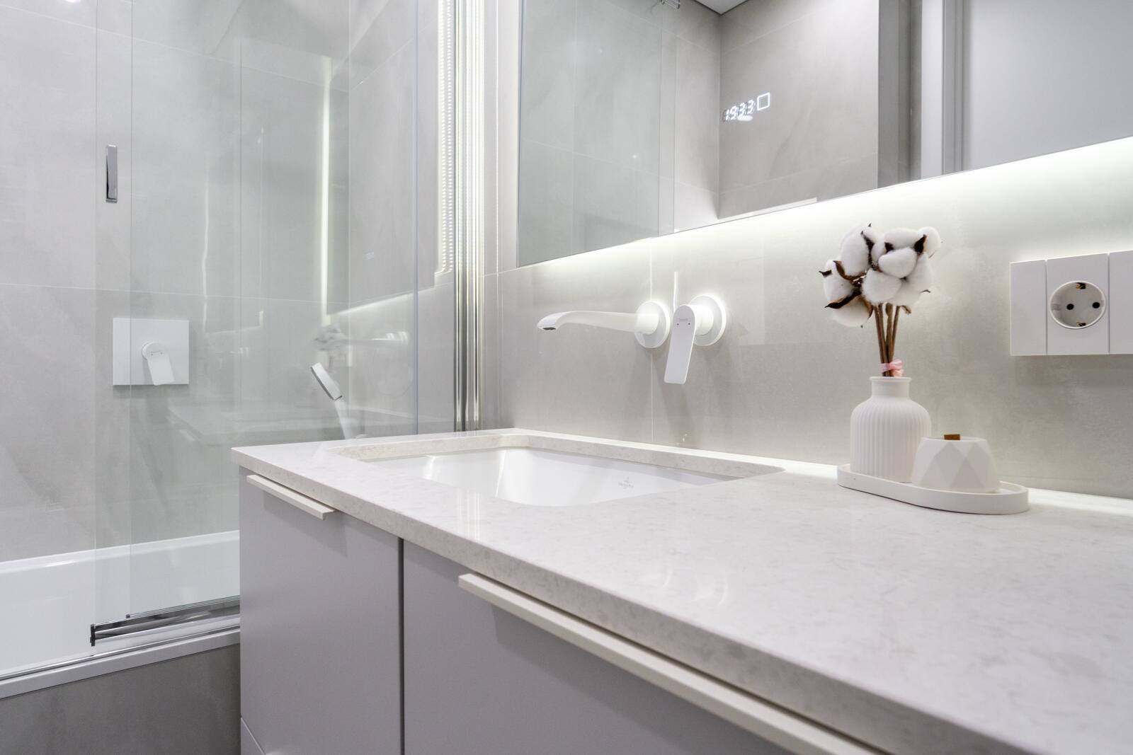 В квартире два внутренних блока кондиционеров с корректным отводом дренажа в канализацию. Установлен проточный водонагреватель с подачей горячей воды на кухню и в санузлы на время отключений. Смонтированы датчики протечки с автоматическим отключением воды.