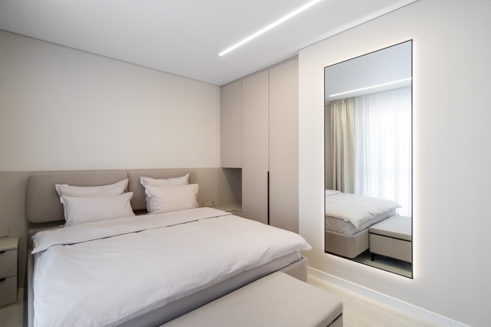 Продуманная электрика: проходные выключатели, мастер-выключатель, ночная подсветка. В спальне — шторы с электроприводом.