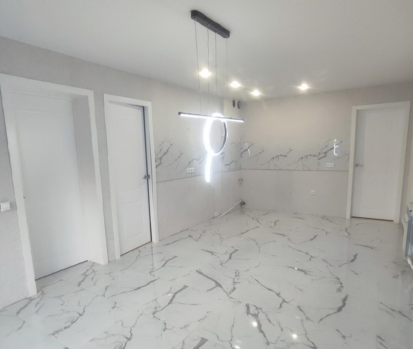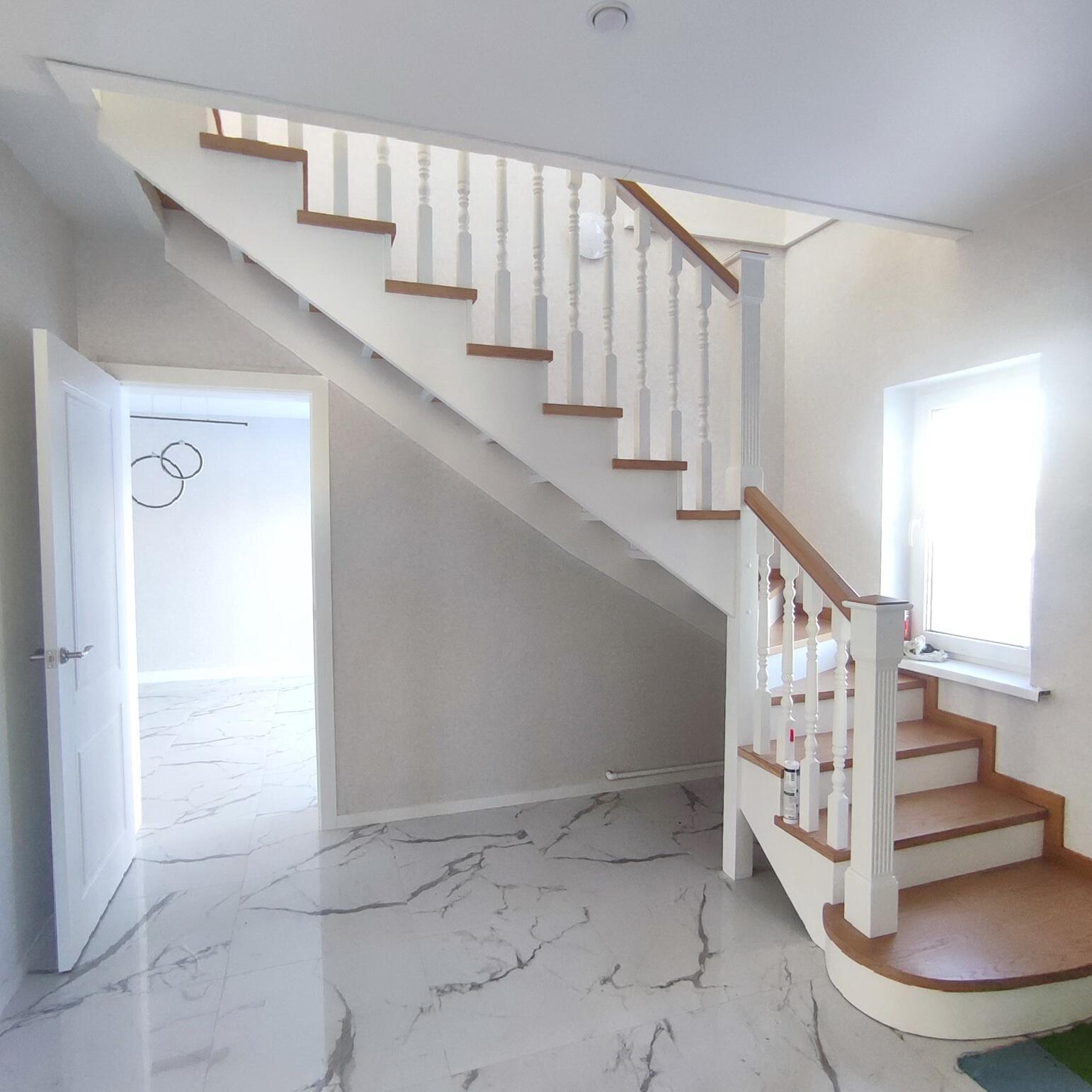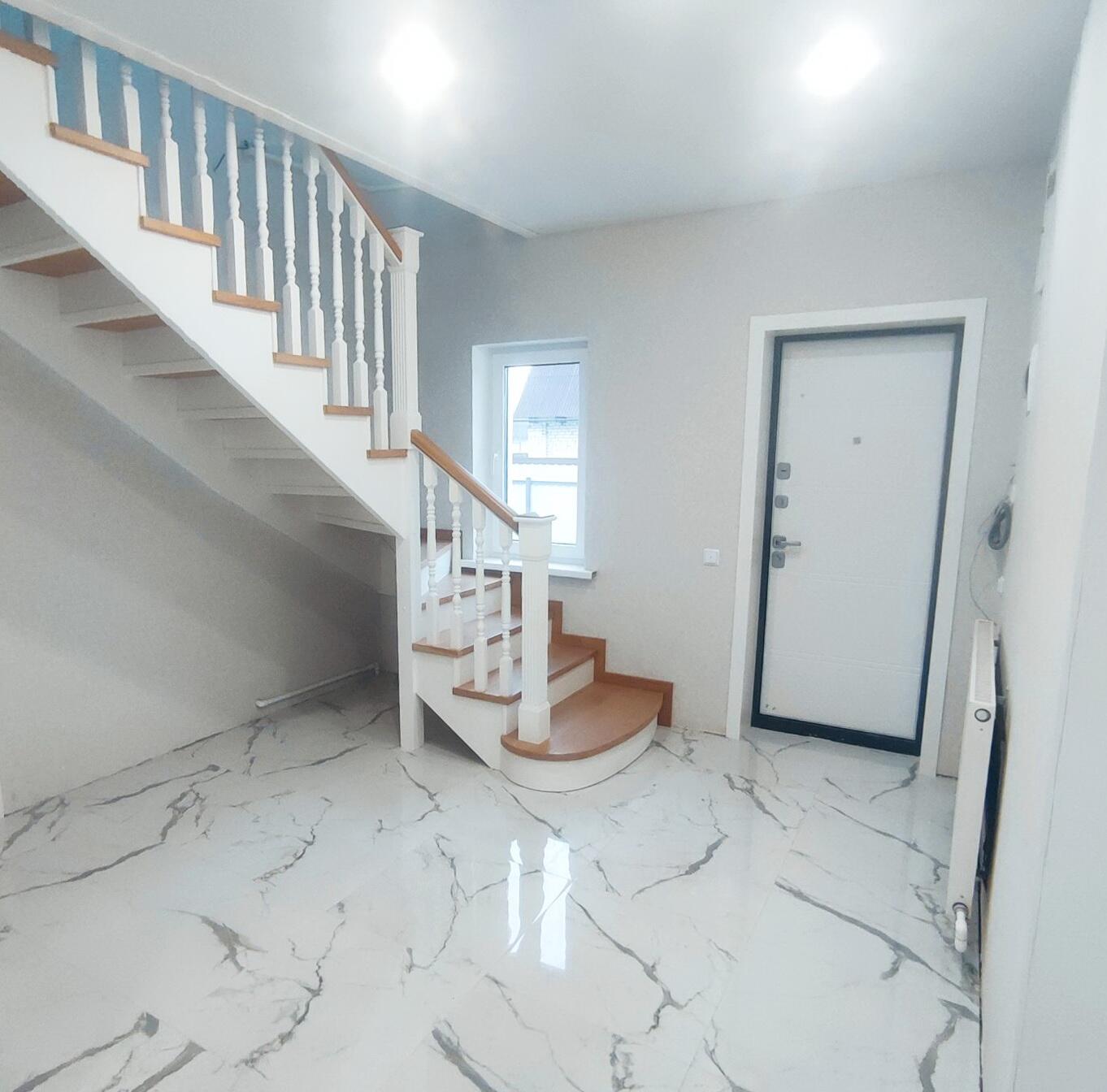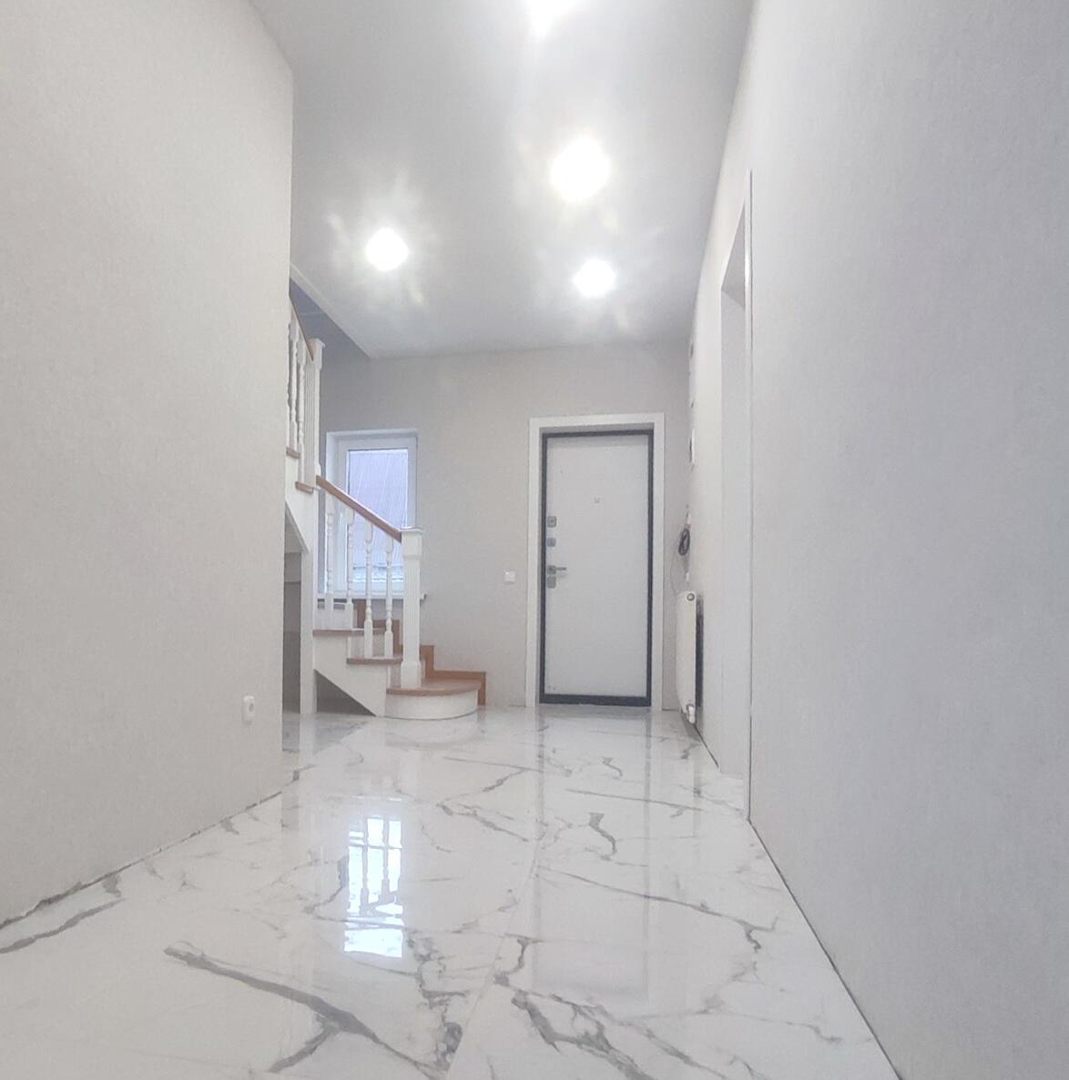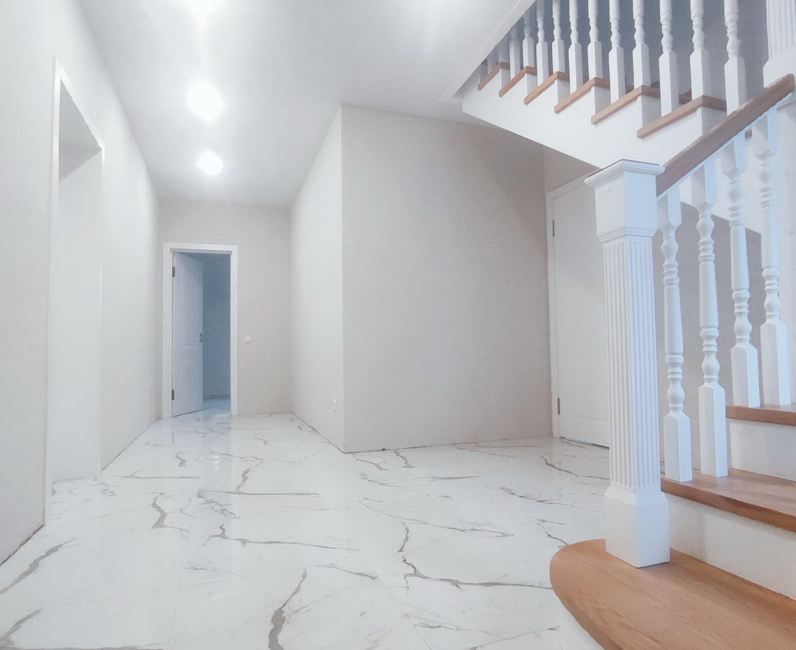 Дом полностью готов к проживанию - полы ламинат с утеплителем и плитка, потолки натяжные, обои немецкие моющиеся, межкомнатные двери МДФ, стеклопакеты ПВХ, входная дверь металлическая.