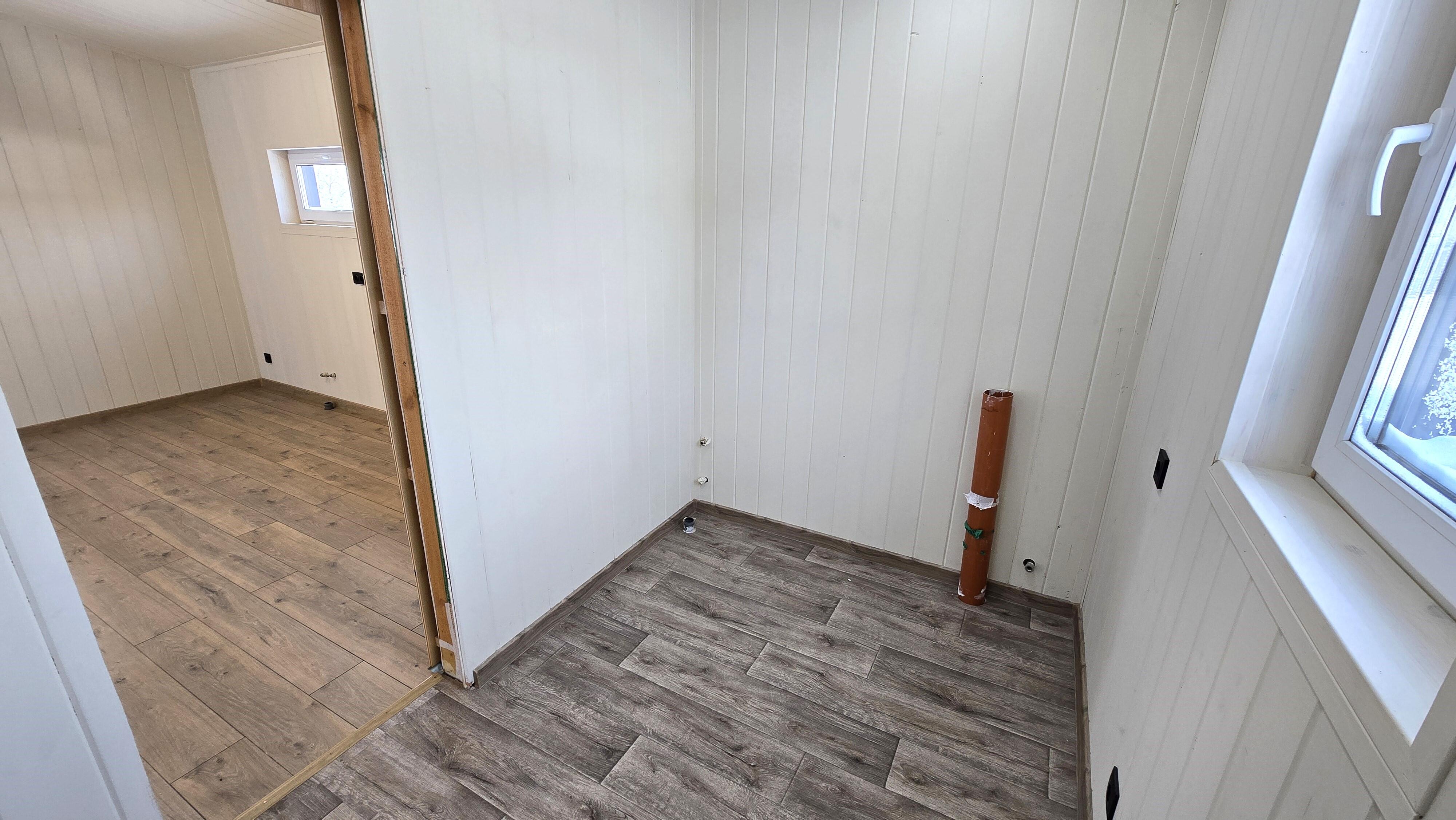- Пол – дер. Каркас (перекрытие пола доска 200×50мм)+ сетка от грызунов + утеплитель + фанера + ламинат.
