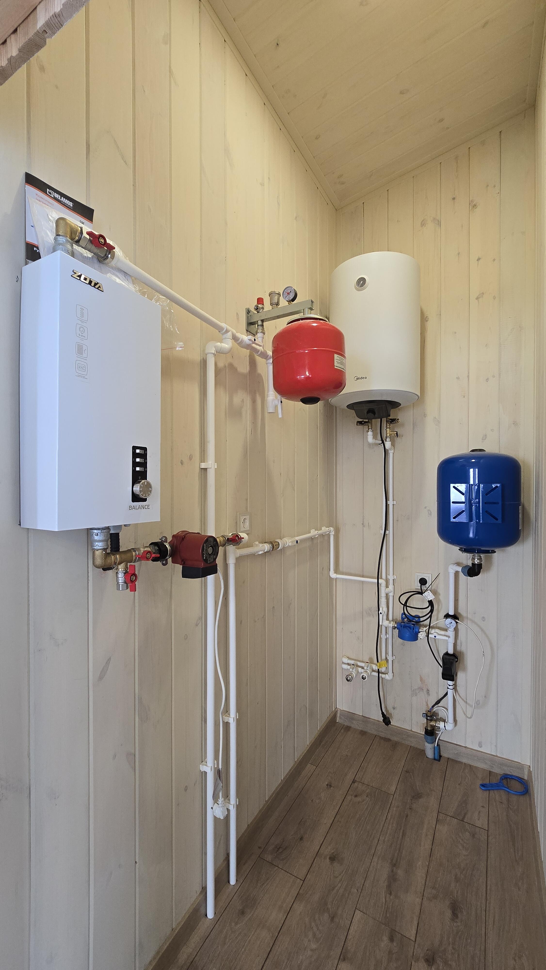 - Отопление - установлен электрокотел 5 кВт (полностью хватает на данный дом для комфортного проживания), выполнена разводка радиаторов – всё работает и отлично греет.