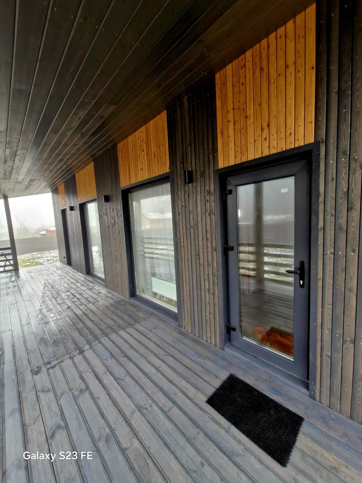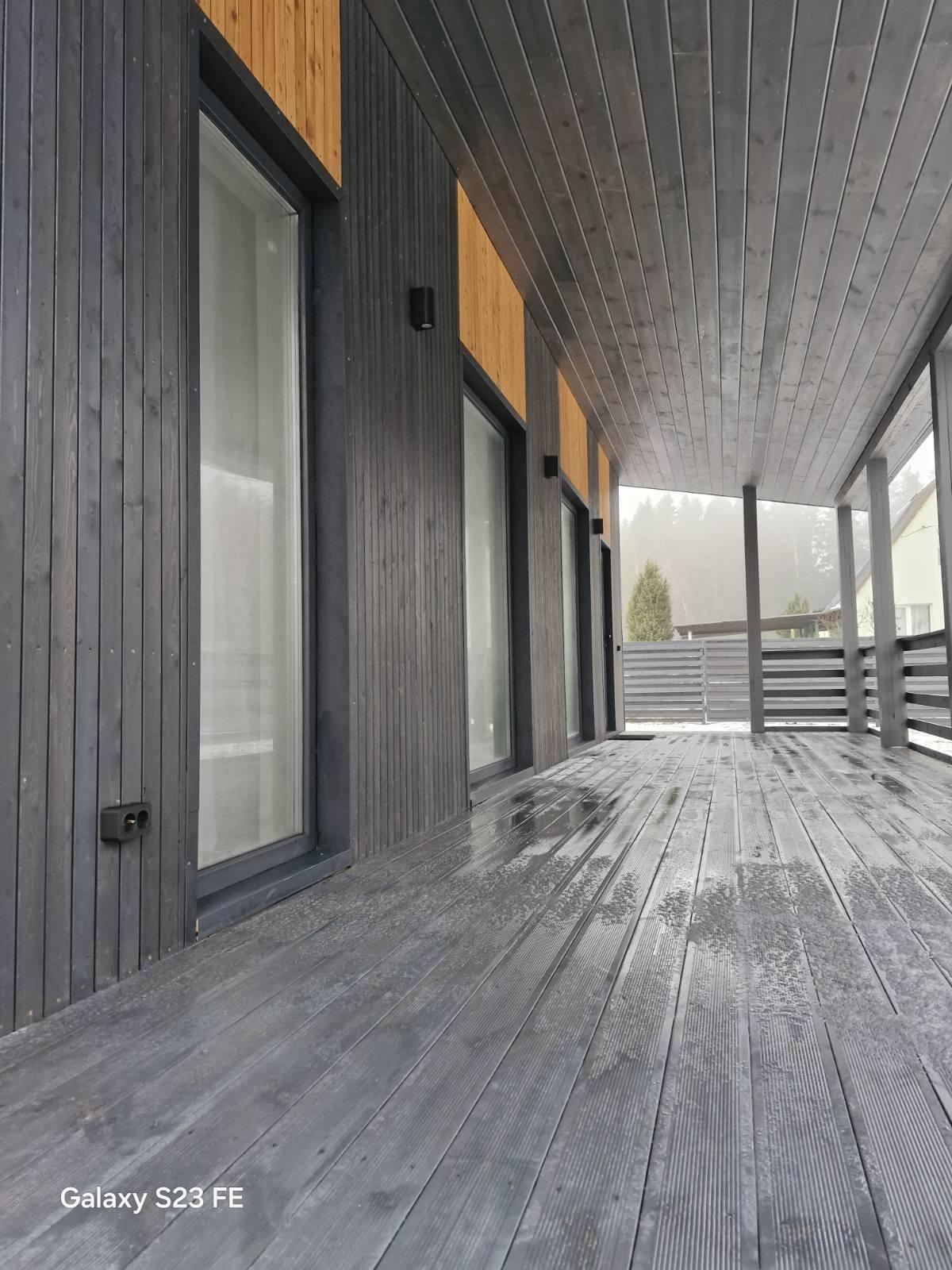- Стены внеш.– деревянный каркас. Пирог: имитация, брусок 30×40, утепление 150, по стойкам, брусок 50×50 контрутепление, брусок 50×50 вентфасад, имитация бруса фасад. Супердифузионная мембрана strotex basic наружняя сторона дома. Пароизоляция: пленка 200микрон, санузел tectum 110pi, укосины согласно проектной документации.
