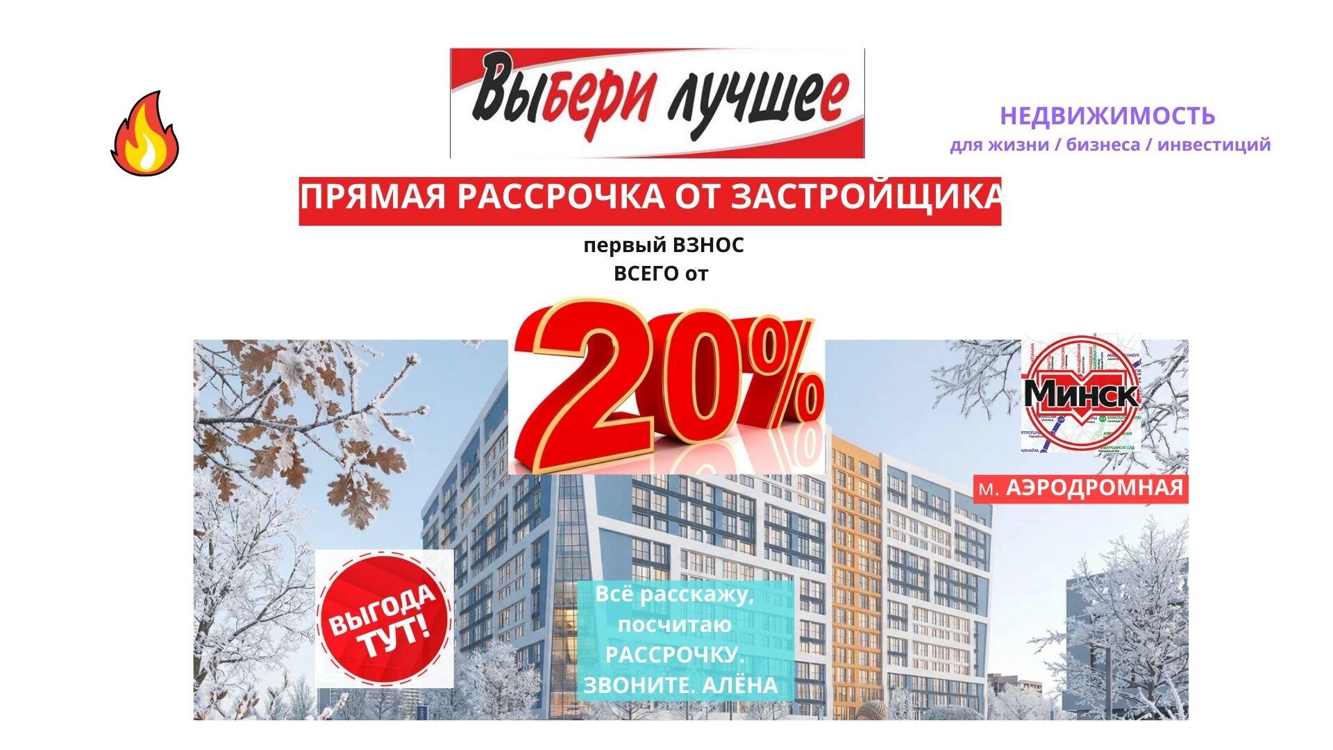 РАССРОЧКА от 20 % первый взнос до 4 лет ВСЕМ! (БЕЗ СПРАВОК И ПОРУЧИТЕЛЕЙ) НАПРЯМУЮ ОТ ЗАСТРОЙЩИКА! до 70 м -разные этажи! Метро «Аэродромная» РЯДОМ -600 МЕТРОВ! В ПЕШЕЙ ДОСТУПНОСТИ!- ПРИ ПОЛНОЙ ОПЛАТЕ (90% и 10% ПОСЛЕ СДАЧИ ДОМА)-РАССРОЧКА - без справок и поручителей! Звоните, всё расскажу.Для жителей дома «Эверест» вся инфраструктура многофункционального комплекса «Минск-Мир».Недалеко от дома:Станция метро «Аэродромная»,Международный финансовый коммерческий центр,торгово-общественный центр «Авиа Молл».Апартаменты запроектированы по принципу «свободной планировки» и имеют варианты различной площади:с возможностью устройства 1ой комнаты (29,91−38,14 кв.м.),с возможностью устройства 2ух комнат (42,68−53,13 кв.м.),с возможностью устройства 3ех комнат (62,30−71,35 кв.м.).Высота от пола до потолка — 2,67 м. Большинство бизнес-апартаментов имеют панорамные окна, в каждом — лоджии.Дизайнерское решение фасадов в сочетании с запоминающимся силуэтным решением застройки будет впечатлять с различных точек прилегающей местности и города.Многофункциональные бизнес-апартаменты в доме Эверест открывают широкие возможности и перспективы. Ведь здесь можно не только проживать, но и зарегистрировать юридическое лицо.Выбирайте подходящий вариант:1. Можно заселиться, приобретя апартаменты, зарегистрироваться по месту жительства, а затем, если у вас возникнет желание, произвести регистрацию юридического лица любой формы собственности и открыть свое дело в «Минск-Мире» — одной из выгодных бизнес-локаций.2. Приобрести многофункциональные апартаменты для бизнеса, оформить регистрацию юридического лица, а затем оформить регистрацию по месту жительства и обустроить многофункциональное помещение с максимальным учетом потребностей каждого из членов вашей семьи. 3. Можно одновременно жить и вести бизнес!Одним из важных ПРЕИМУЩЕСТВ приобретения бизнес-апартаментов и административно-торговых помещений именно сейчас являются удобные финансовые инструменты в виде рассрочки от застройщика на срок до 48 месяцев. Метро «Аэродромная» ПРЯМО в Минск мире!