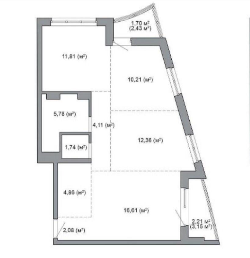 Жилая площадь 64 м²