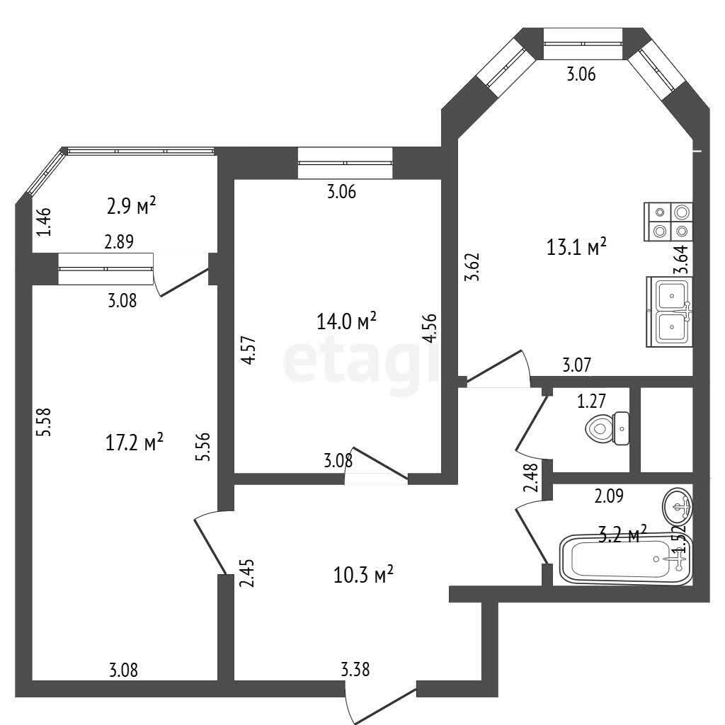– раздельный санузел, отдельные комнаты. Шикарная большая кухня с эркерными окнами;