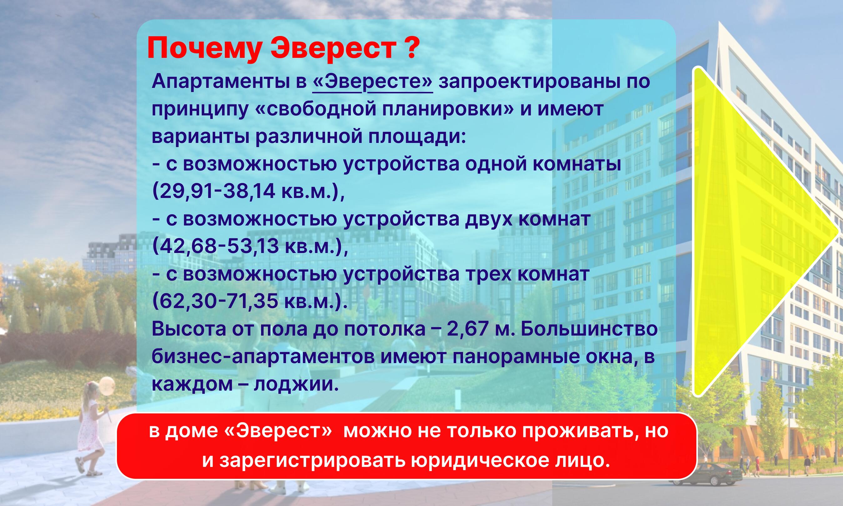 Продаётся новая недвижимость в административно-жилом комплексе «Эверест» — уникальный проект, сочетающий комфортные жилые пространства и современные офисные решения для успешного ведения бизнеса.Преимущества покупки апартаментов в комплексе «Эверест»:- Удобные финансовые условия: доступна рассрочка от 20% первого взноса без справки о доходах и поручительства третьих лиц.- Широкий выбор...