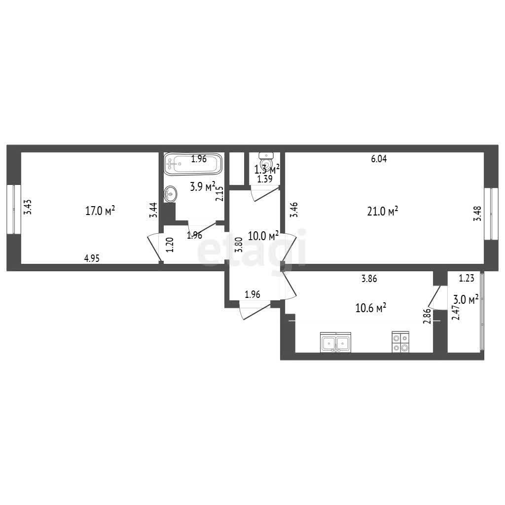 - Лоджия: 3 м2 (застеклена и утеплена)