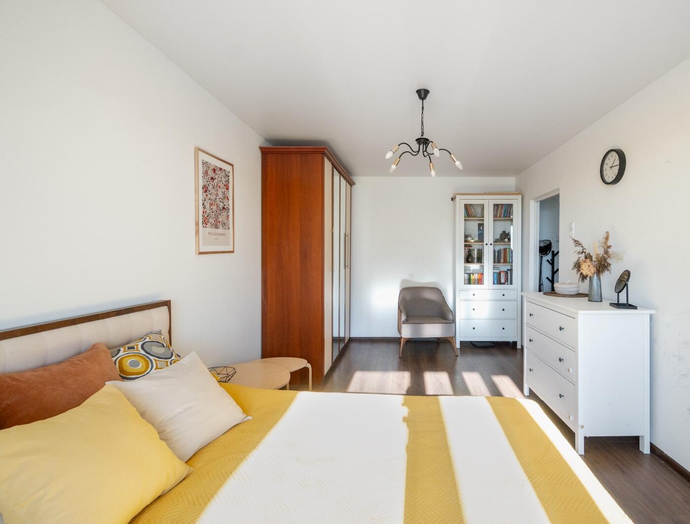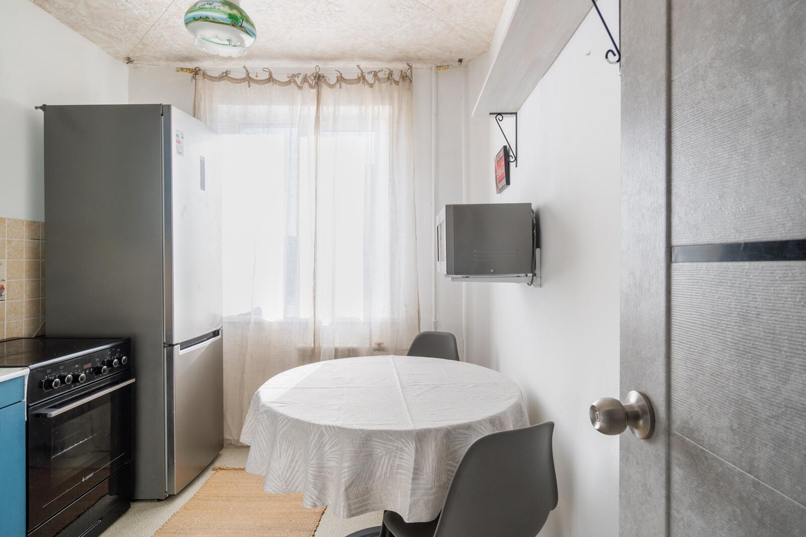 Квартира расположена на 8 этаже 10-этажного теплого дома. Оптимальный этаж: много света и минимум уличного шума. Дом аккуратный, с дружелюбными и спокойными соседями.