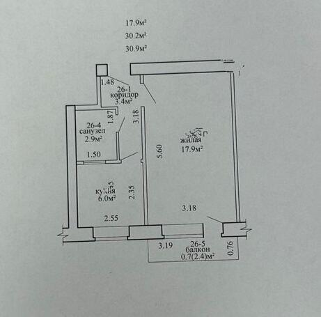 · Площадь: 30,9 м2.
