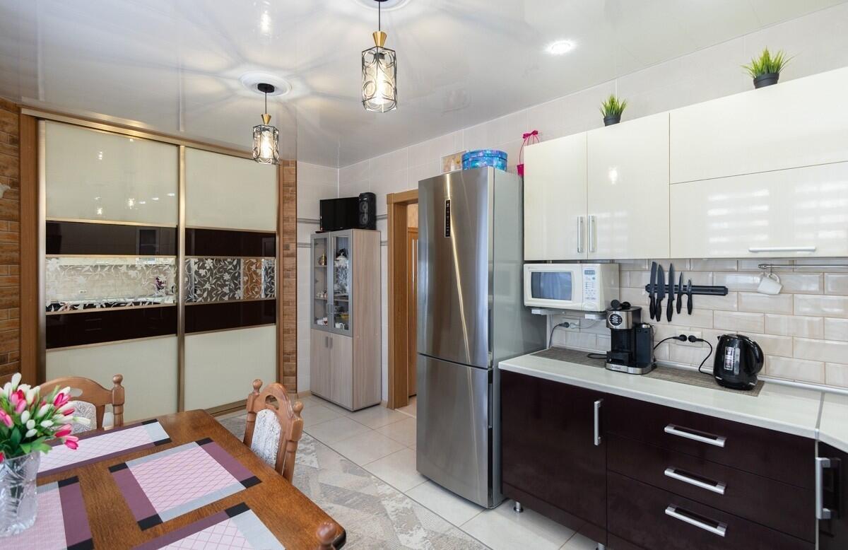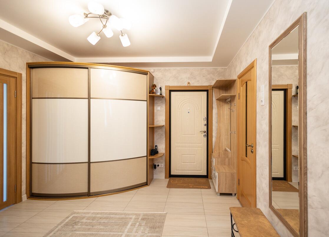 Полы – плитка и ламинат в спальнях. Окна ПВХ, лоджии застеклены, встроенные шкафы, оборудованы места для хранения.