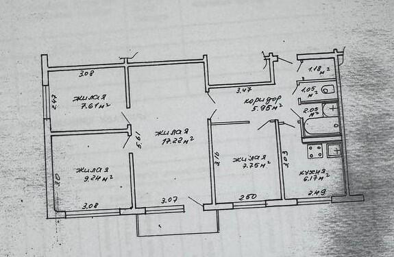 · Комнаты: зал 17,22м2, изолированные комнаты 9,24 м2, 7,75 м2 и 7,61 м2. Кухня 6,17 м2.