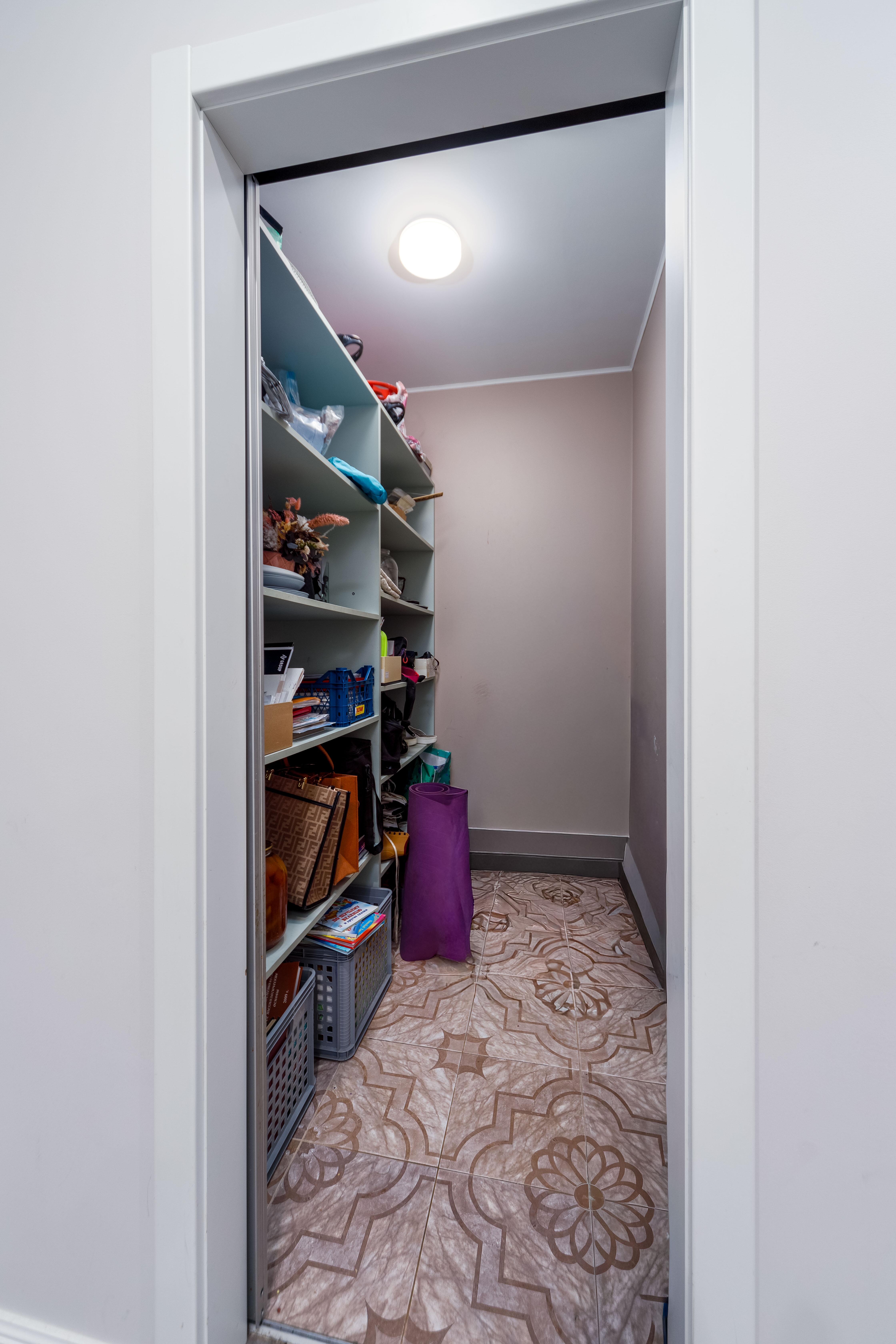 В коридоре обустроены вместительный гардероб и кладовая, для хранения всех необходимых вещей