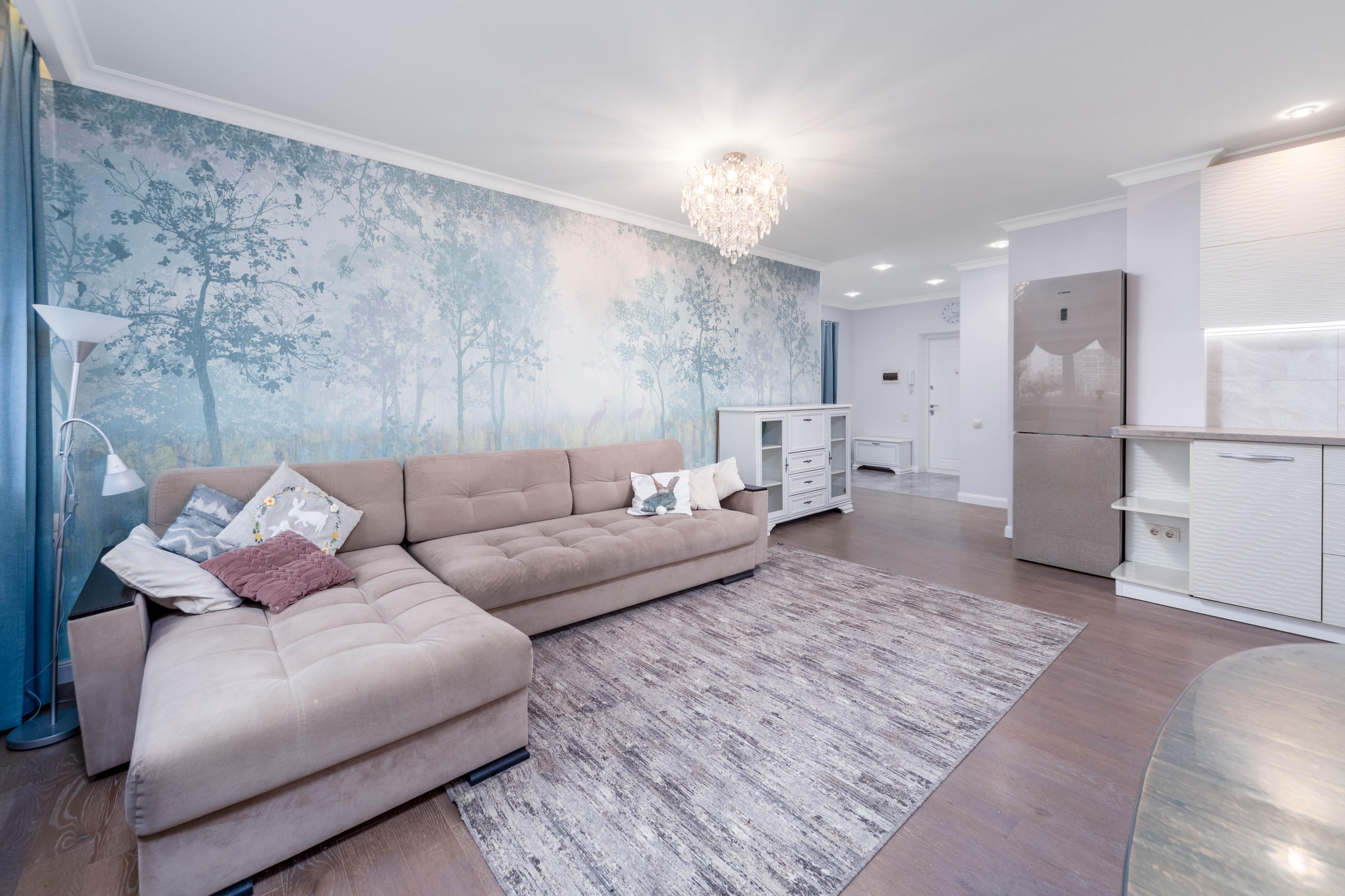 Высокие потолки (2,75 м) и светлая цветовая гамма создают ощущение простора и наполняют квартиру светом.