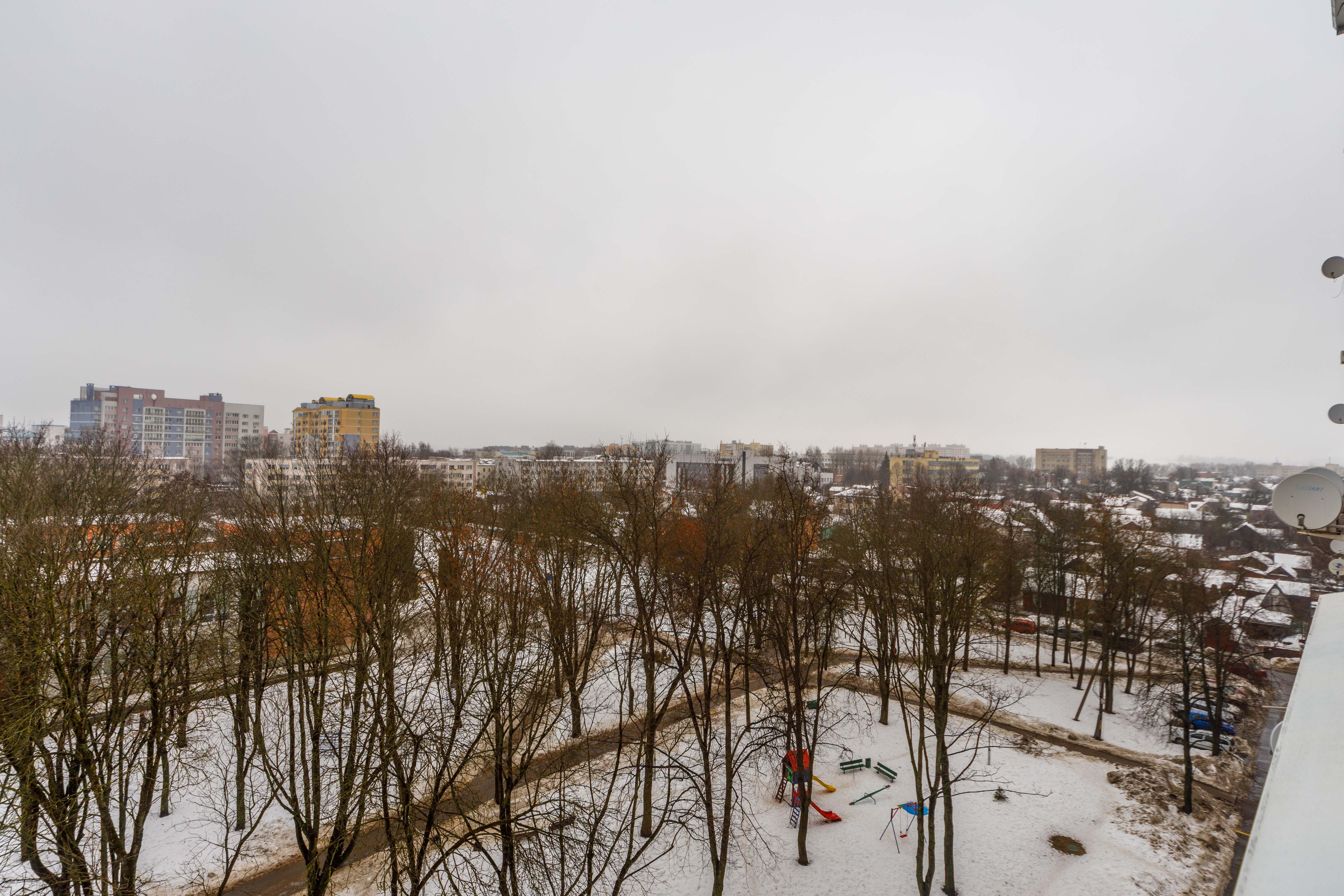 Из окон открываются ничем не ограниченный вид на зелёный сквер.