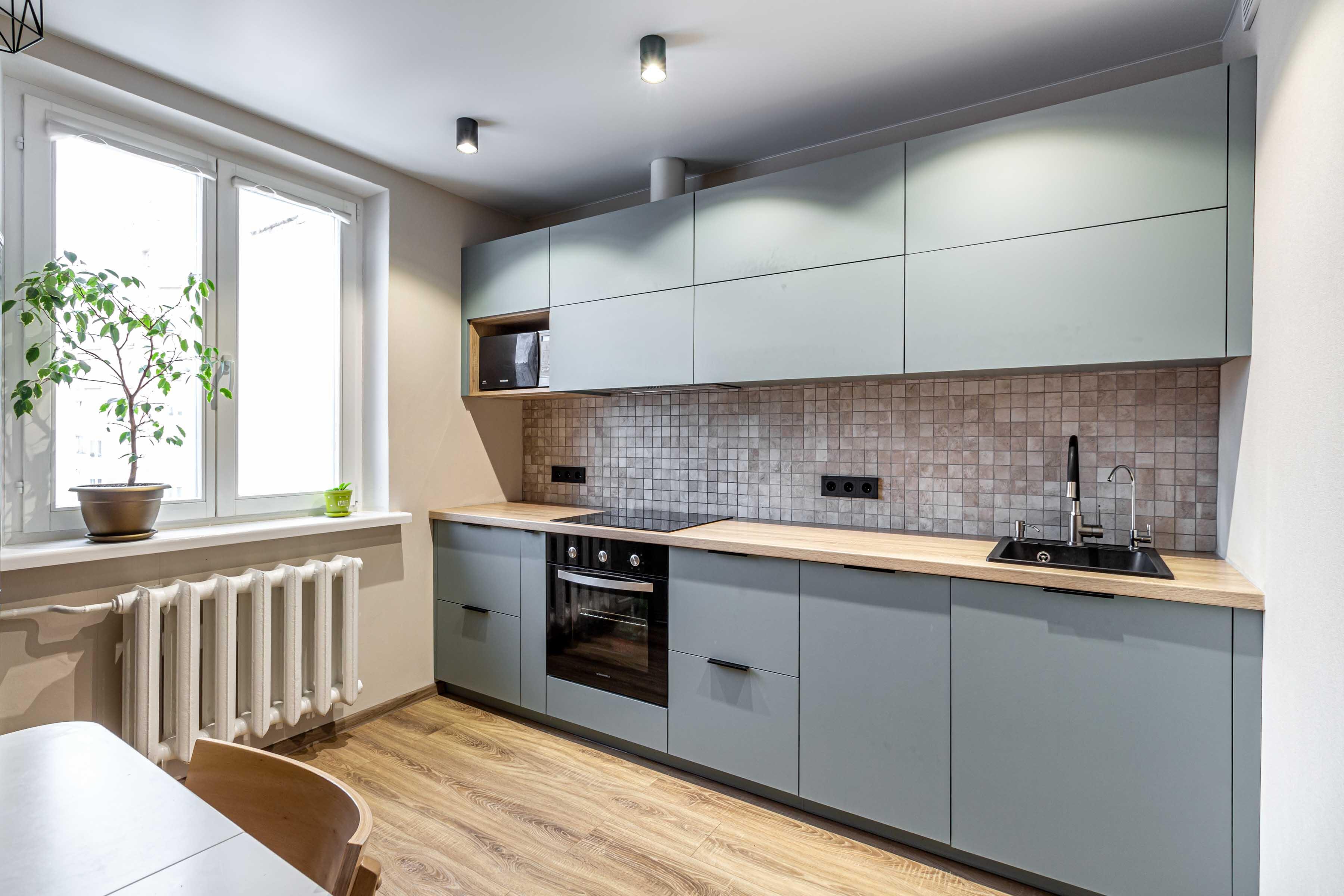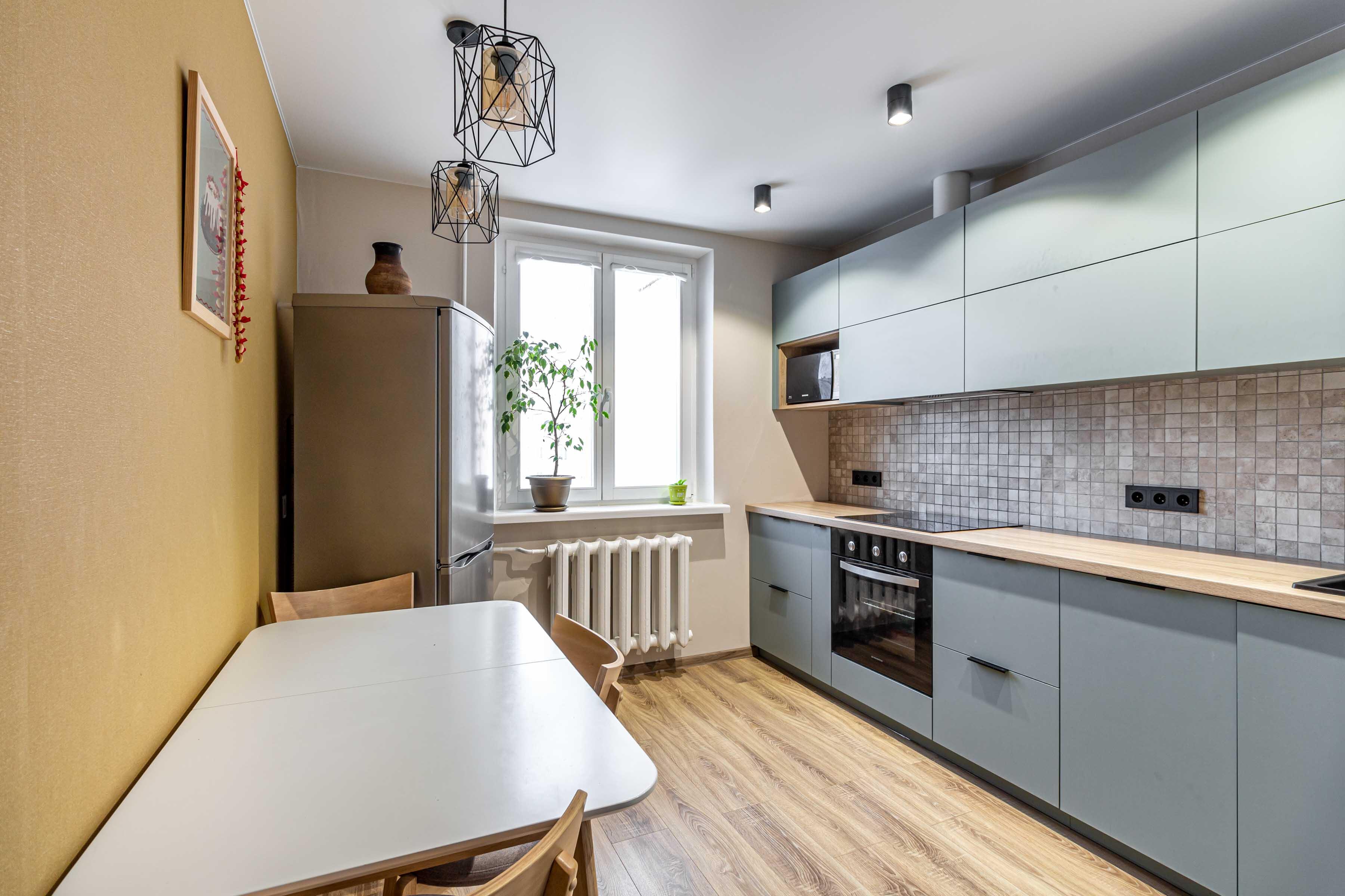 - Новая современная кухня, оснащенная всем необходимым: варочная индукционная поверхность и духовой шкаф, на всех шкафчиках и ящиках система доводчиков Blum, установлена система очистки воды, кухонный фартук из керамогранита