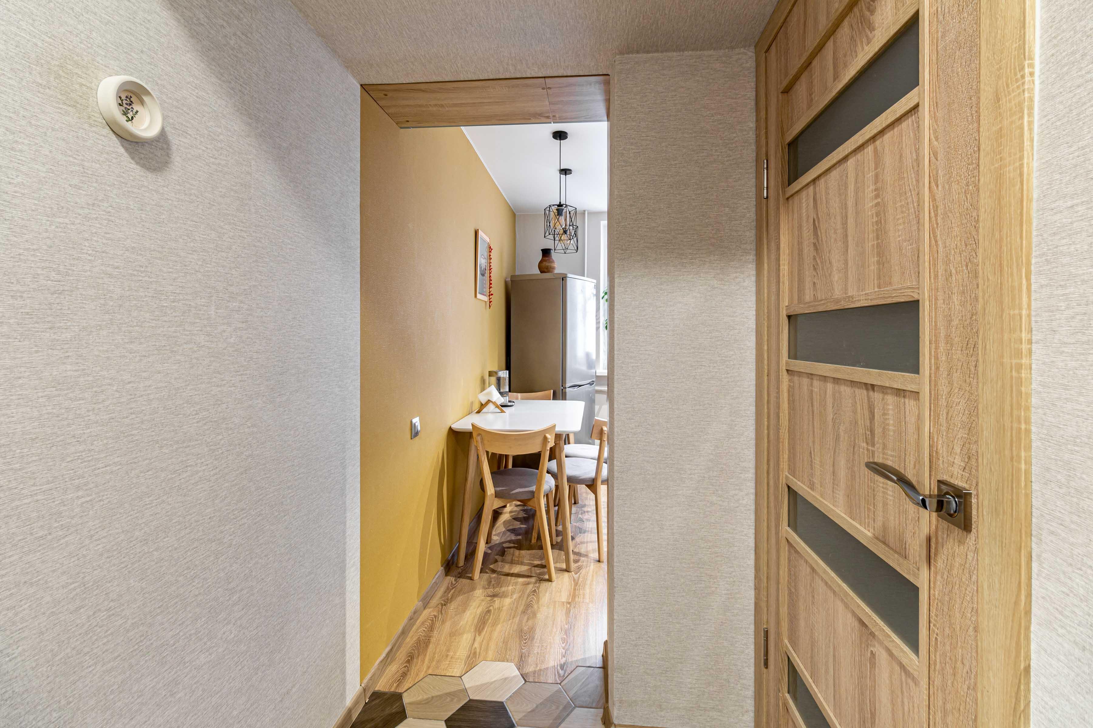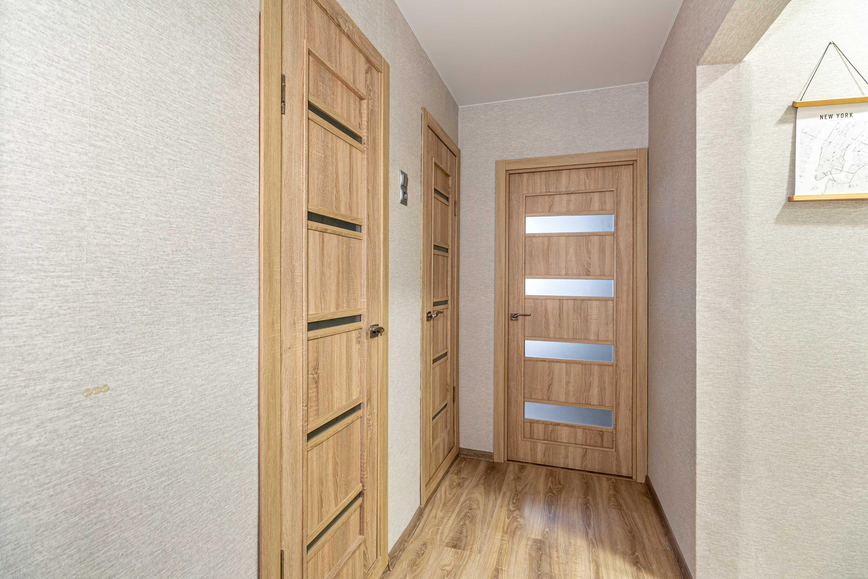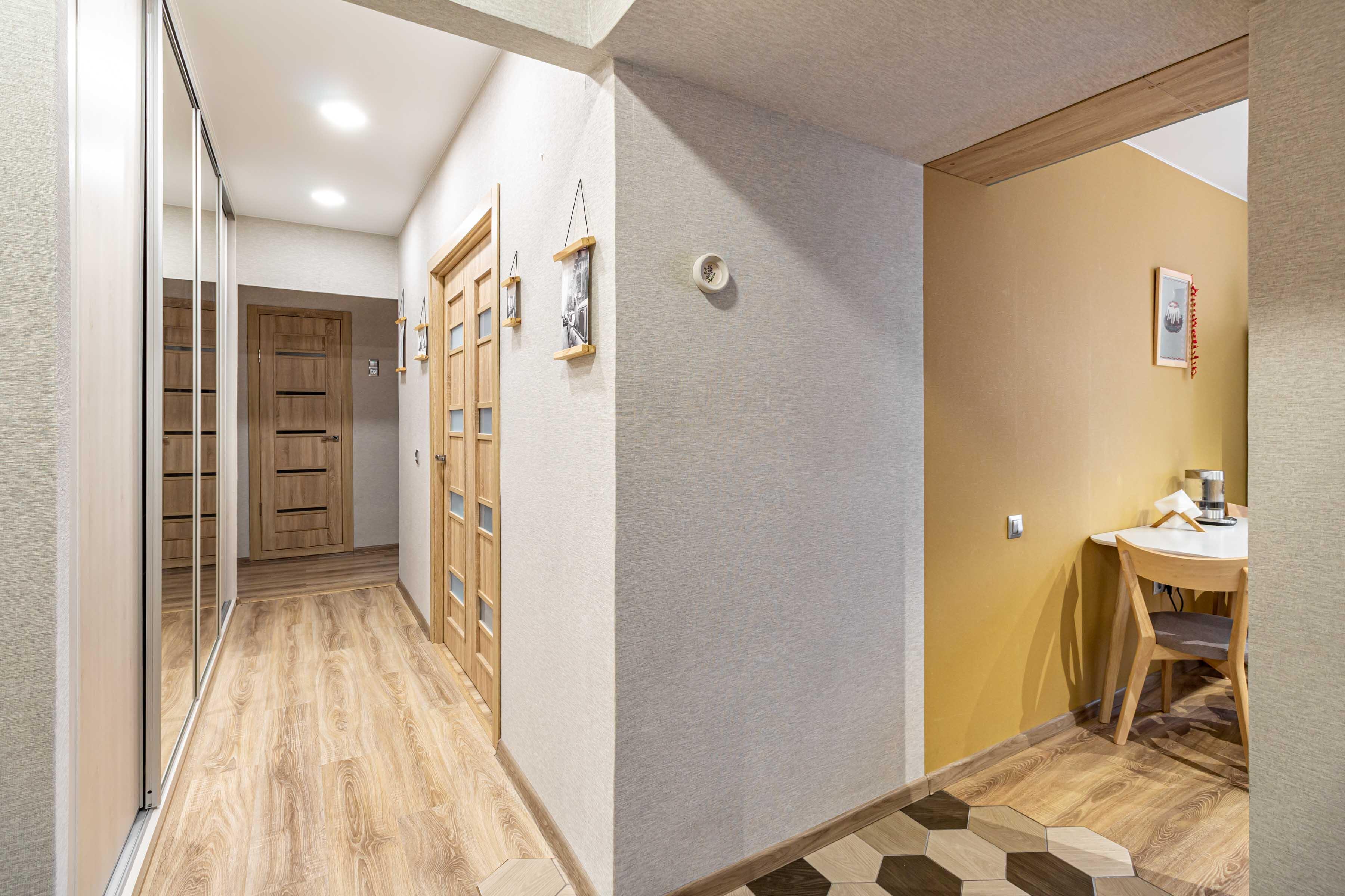 - Очень вместительный шкаф – купе в коридоре, в котором предусмотрены полки под все необходимые вещи