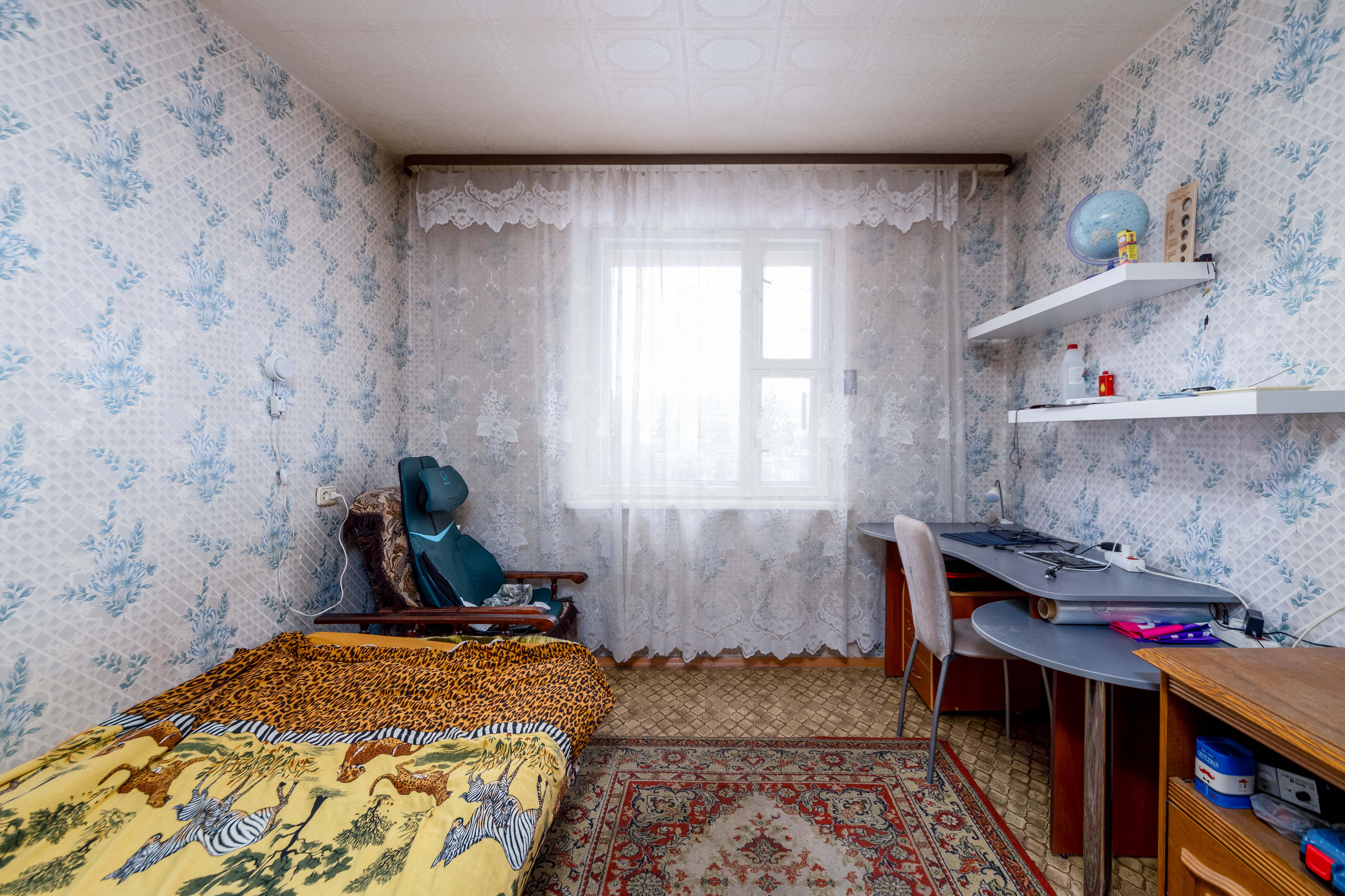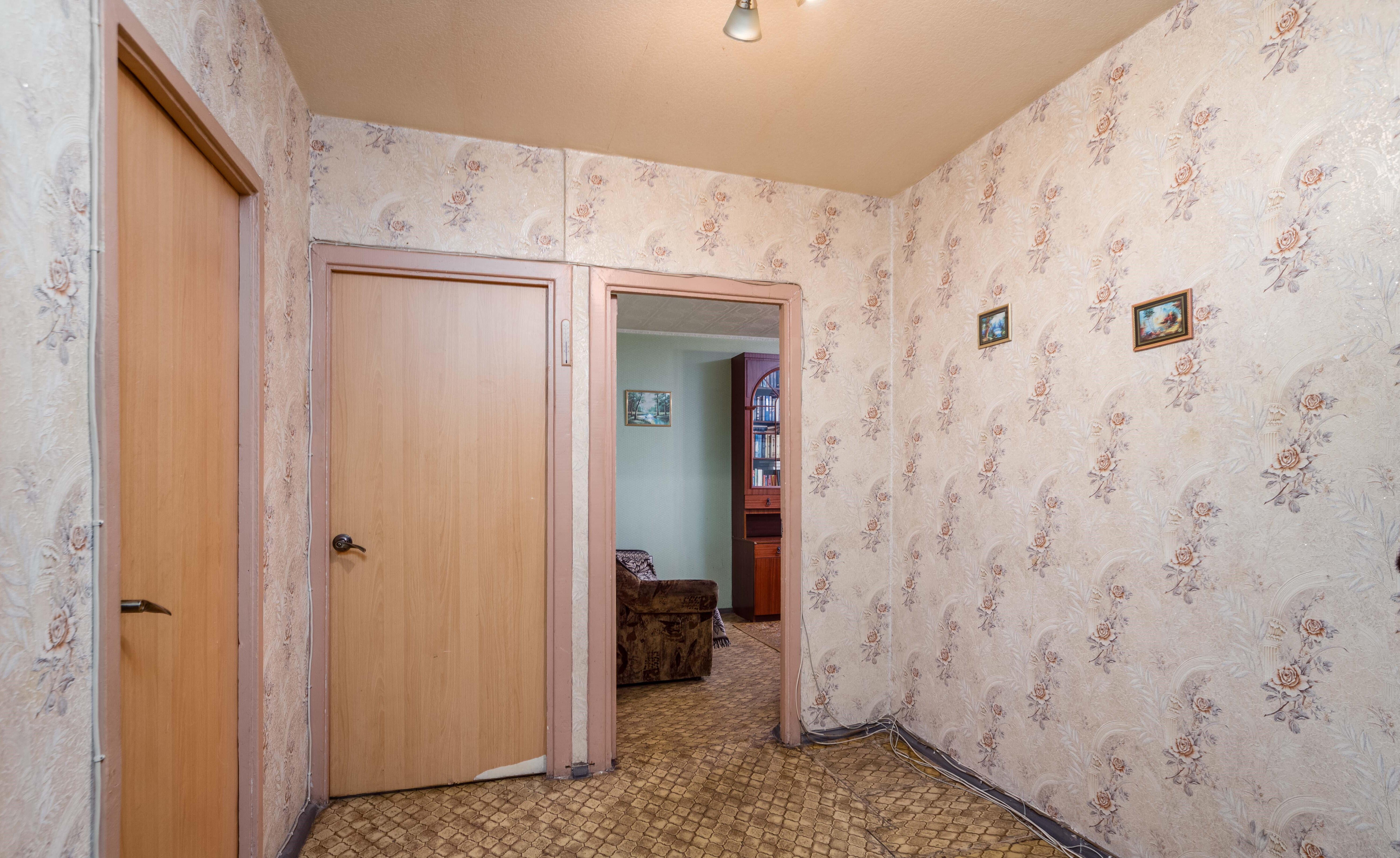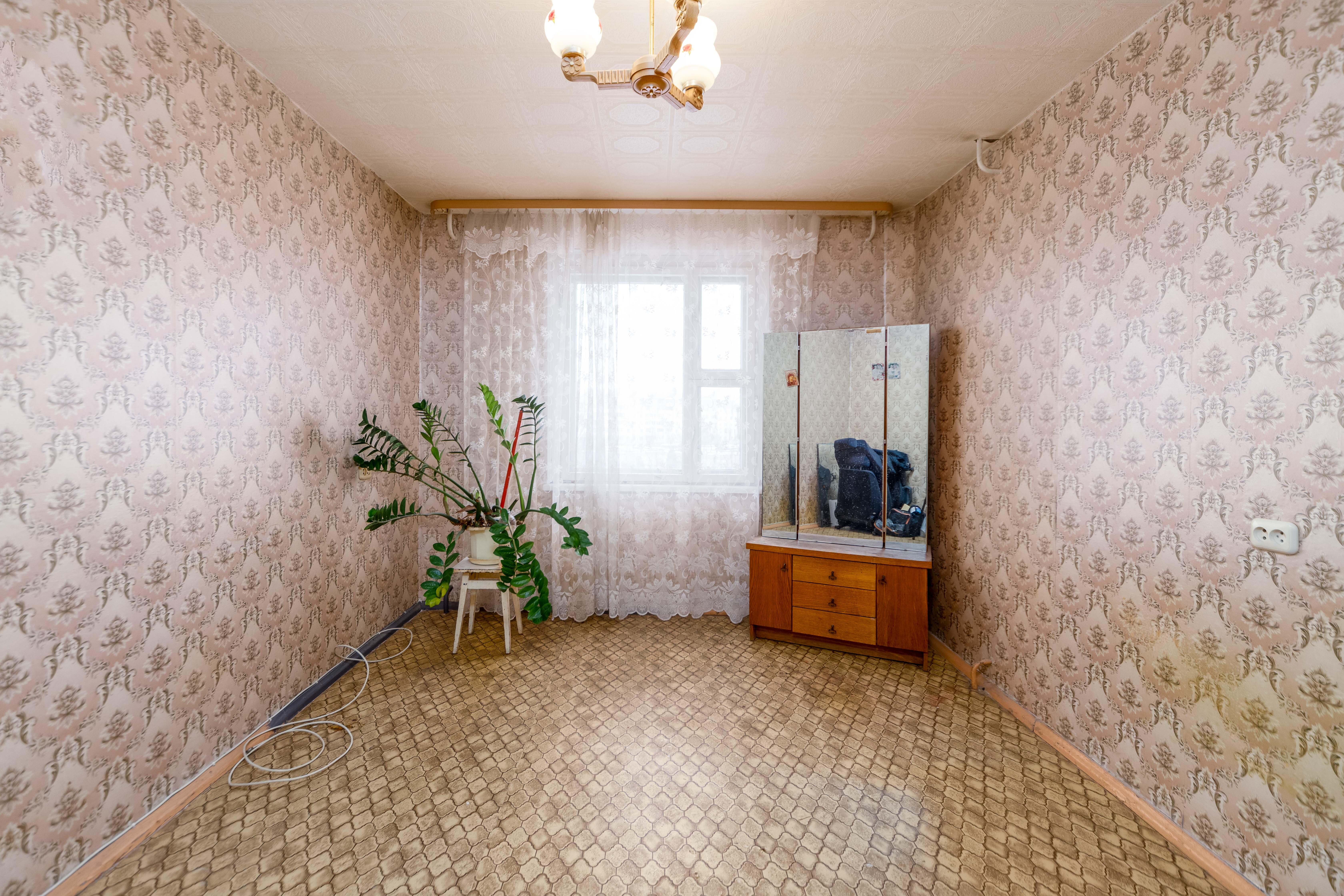 Входные двери в квартиру металлические, на полу линолеум. Окна квартиры выходят на две стороны дома: кухня, две комнаты- на западную сторону, проходная и маленькая комнаты – на восточную сторону. Требуется ремонт.
