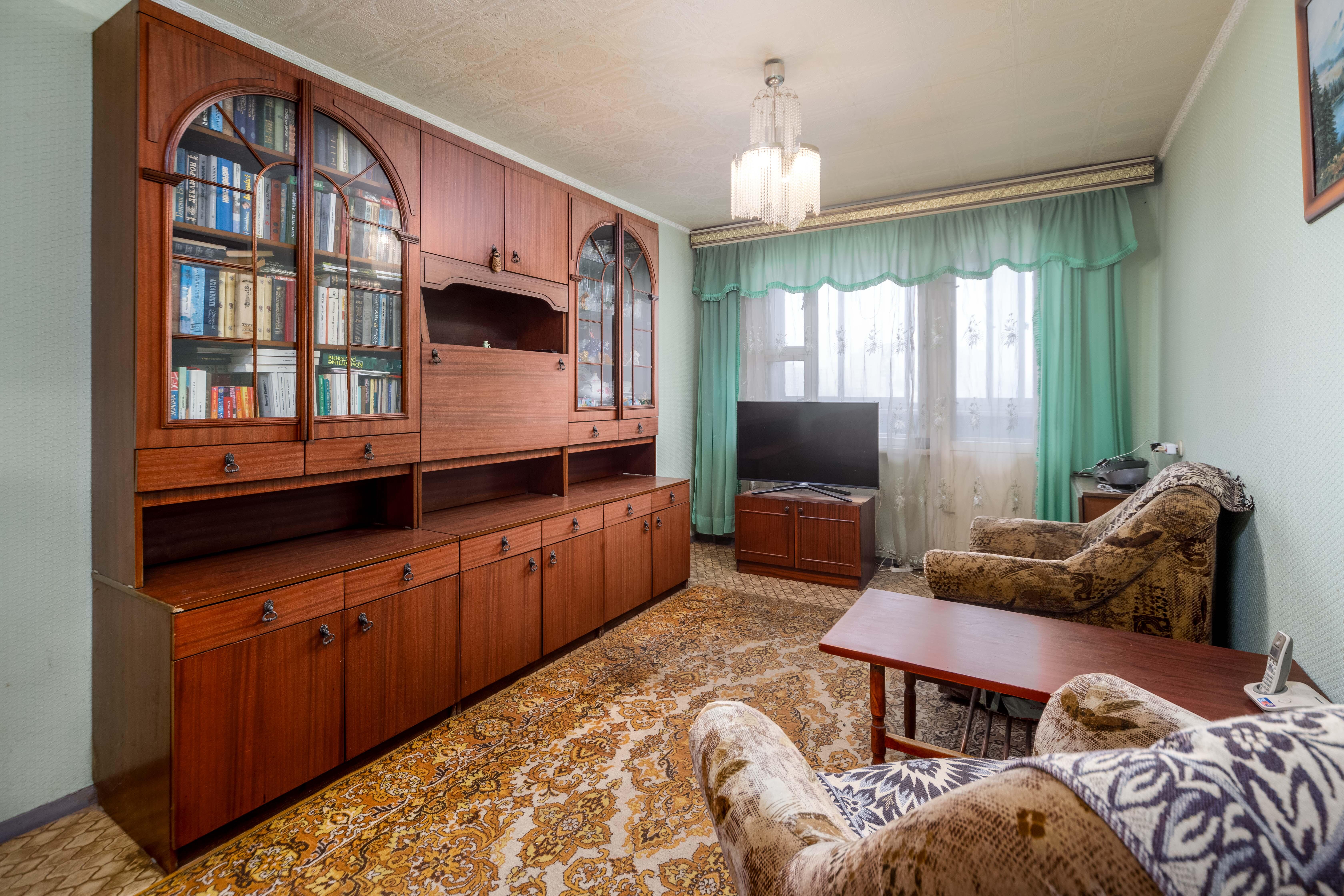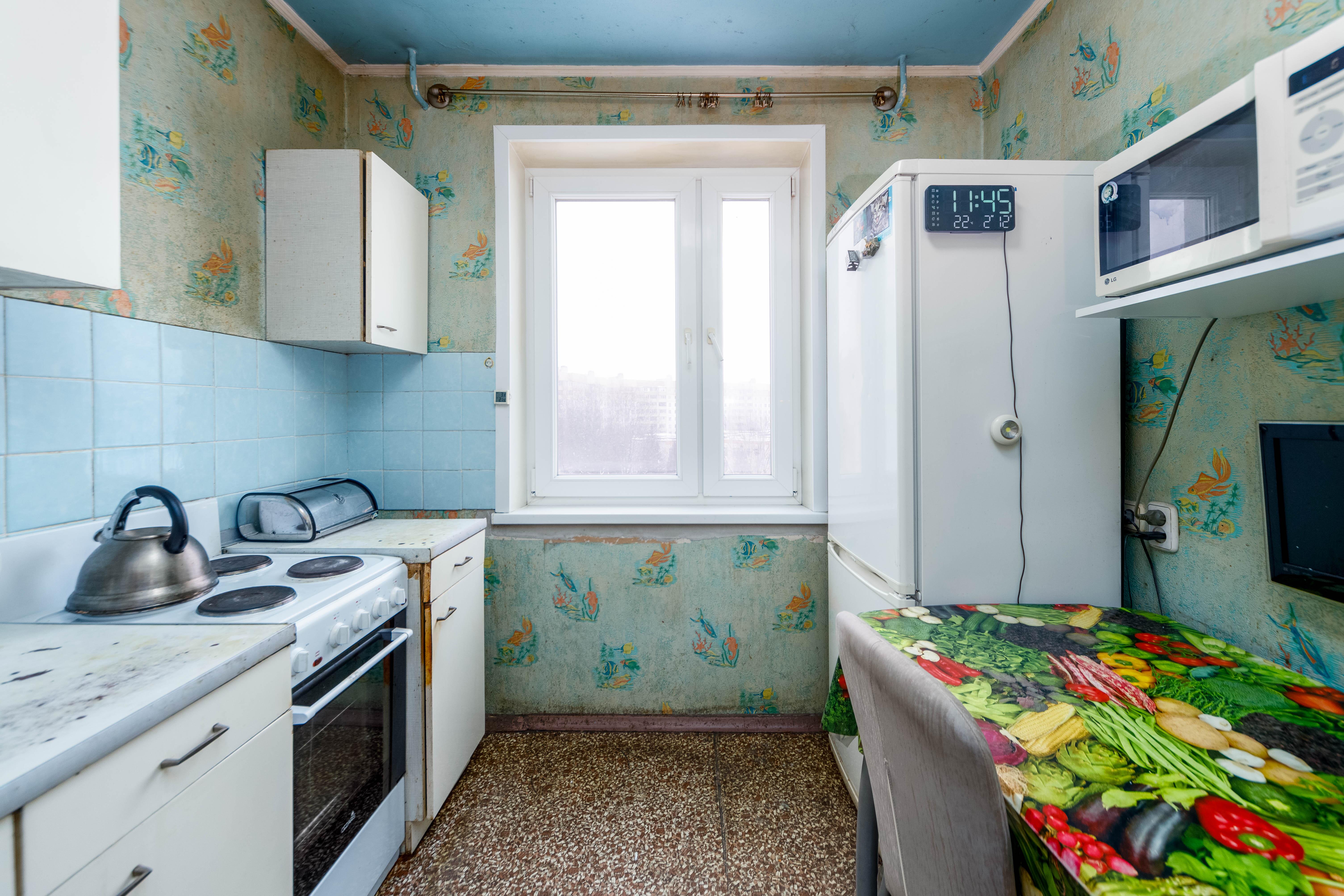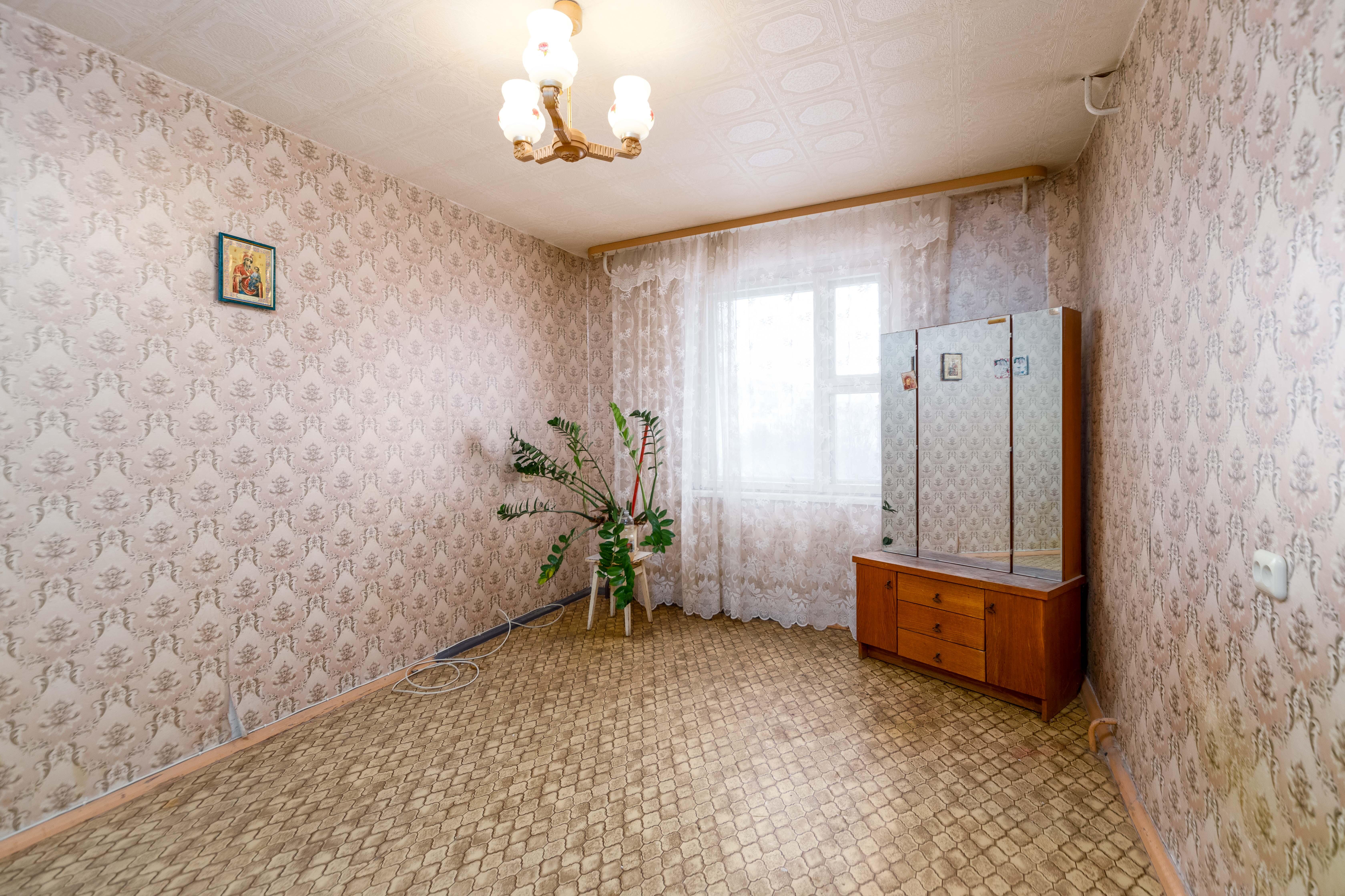Входные двери в квартиру металлические, на полу линолеум. Окна квартиры выходят на две стороны дома: кухня, две комнаты- на западную сторону, проходная и маленькая комнаты – на восточную сторону. Требуется ремонт.