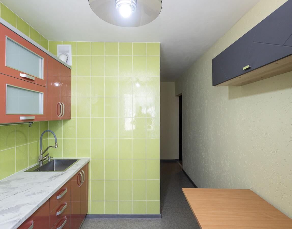 Квартира полностью готова к проживанию, укомплектована мебелью и техникой. Напольное покрытие –ламинат и плитка, стены оклеены обоями, встроенная кухонная мебель с бытовой техникой, газовая плита, окна ПВХ, новая рама и стеллаж на лоджии.